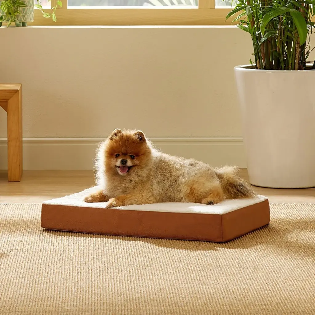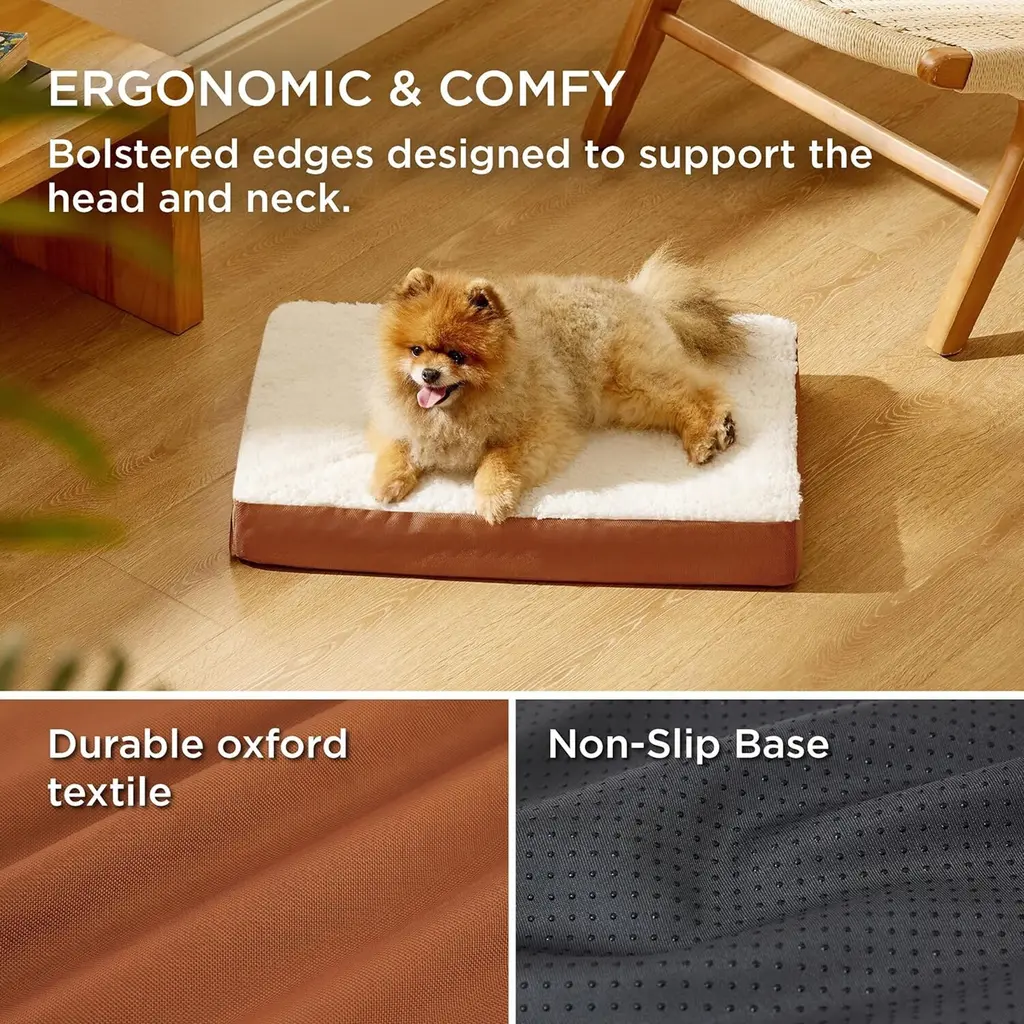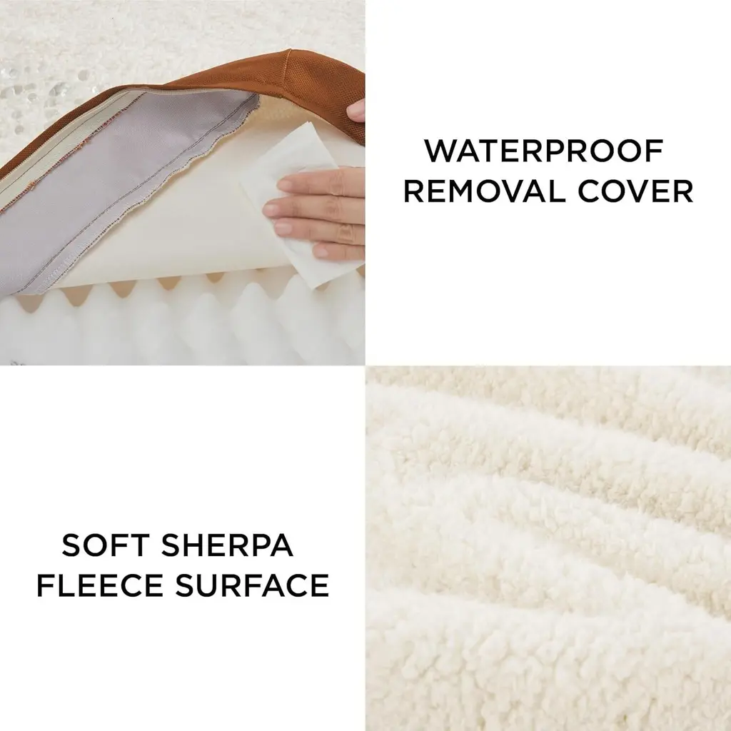All-Seasons Bed: The two-sided design features warm and cozy sherpa with a reverse side of cool and soft Oxford fabric. Durable and suitable for all-season use¡ªkeep your dog cool in summer and warm in winter for increased comfort. Designed to give your pet unparalleled support for a deep, dreamy sleep. High-density egg-crate foam distributes weight evenly and provides the perfect amount of pressure relief to reduce joint pain and arthritis discomfort. The classic pet bed mattress design gives your fluffy friend plenty of room to sprawl out and get cozy in any position. Easy to carry and ideal for use indoors and outside, in a crate, in your car, or wherever life takes you.Featuring an easy-to-remove, durable, and stain-resistant cover that makes deep cleaning a breeze. Simply machine wash and tumble dry. SIZE: 20.0"L x 15.0"W x 3.0"Th, Suitable for Pet or Cats Up to 15 lbs. SIZE: 24.0"L x 16.0"W x 3.0"Th, Suitable for Pet or Cats Up to 20 lbs. SIZE: 30.0"L x 20.0"W x 3.0"Th, Suitable for Pet or Cats Up to 35 lbs. SIZE: 35.0"L x 22.0"W x 3.0"Th, Suitable for Pet Up to 50 lbs. SIZE: 36.0"L x 27.0"W x 3.0"Th, Suitable for Pet Up to 65 lbs. SIZE: 41.0"L x 29.0"W x 3.5"Th, Suitable for Pet Up to 90 lbs. SIZE: 44.0"L x 32.0"W x 3.0"Th, Suitable for Pet Up to 100 lbs. SIZE: 54.0"L x 44.0"W x 4.0"Th, Suitable for Pet Up to 150 lbs.