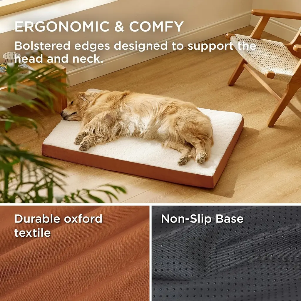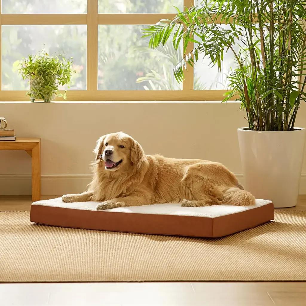 All-Seasons Bed: The two-sided design features warm and cozy sherpa with a reverse side of cool and soft Oxford fabric. Durable and suitable for all-season use¡ªkeep your dog cool in summer and warm in winter for increased comfort. Designed to give your pet unparalleled support for a deep, dreamy sleep. High-density egg-crate foam distributes weight evenly and provides the perfect amount of pressure relief to reduce joint pain and arthritis discomfort. The classic pet bed mattress design gives your fluffy friend plenty of room to sprawl out and get cozy in any position. Easy to carry and ideal for use indoors and outside, in a crate, in your car, or wherever life takes you.Featuring an easy-to-remove, durable, and stain-resistant cover that makes deep cleaning a breeze. Simply machine wash and tumble dry. SIZE: 20.0"L x 15.0"W x 3.0"Th, Suitable for Pet or Cats Up to 15 lbs. SIZE: 24.0"L x 16.0"W x 3.0"Th, Suitable for Pet or Cats Up to 20 lbs. SIZE: 30.0"L x 20.0"W x 3.0"Th, Suitable for Pet or Cats Up to 35 lbs. SIZE: 35.0"L x 22.0"W x 3.0"Th, Suitable for Pet Up to 50 lbs. SIZE: 36.0"L x 27.0"W x 3.0"Th, Suitable for Pet Up to 65 lbs. SIZE: 41.0"L x 29.0"W x 3.5"Th, Suitable for Pet Up to 90 lbs. SIZE: 44.0"L x 32.0"W x 3.0"Th, Suitable for Pet Up to 100 lbs. SIZE: 54.0"L x 44.0"W x 4.0"Th, Suitable for Pet Up to 150 lbs.