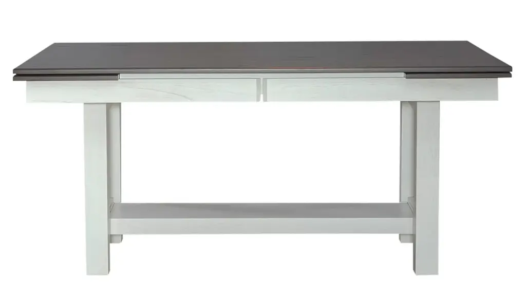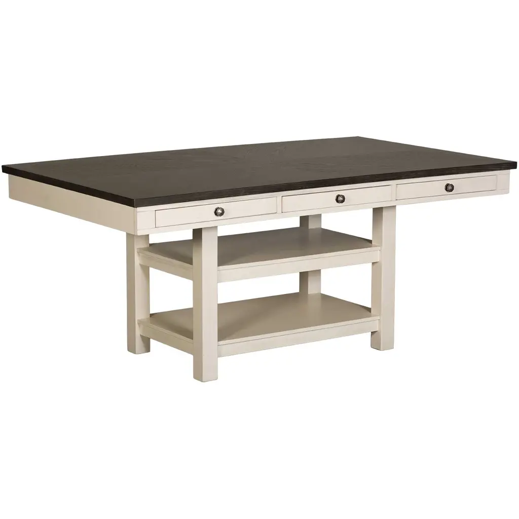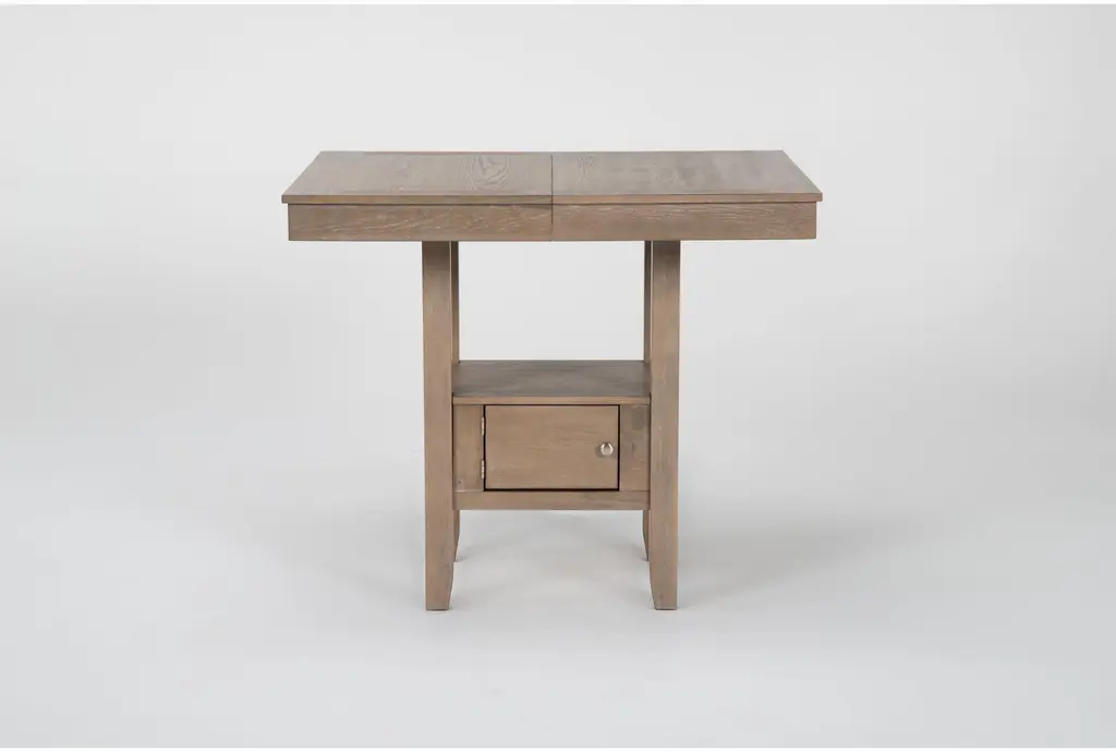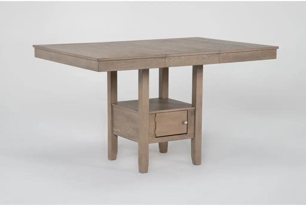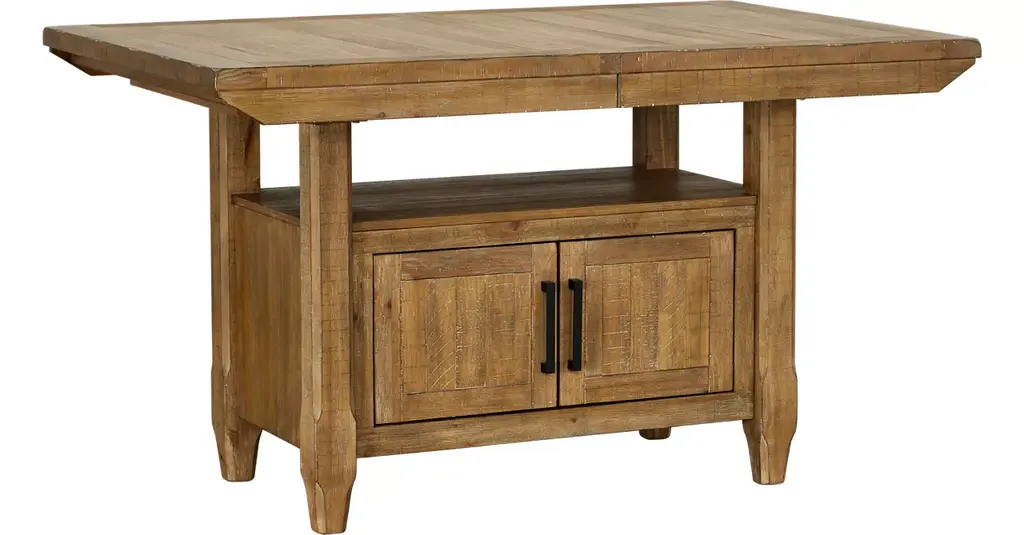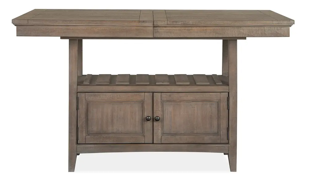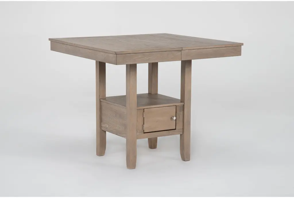 Casual dining takes on new heights with our Ortiz counter height dining collection. Enjoy the experience of easy and inviting entertaining with elevated designs that feature a combination of solid wood, veneers and MDF. The counter table features storage space for linens and small serveware, plus an extension leaf to make room for grander gatherings.