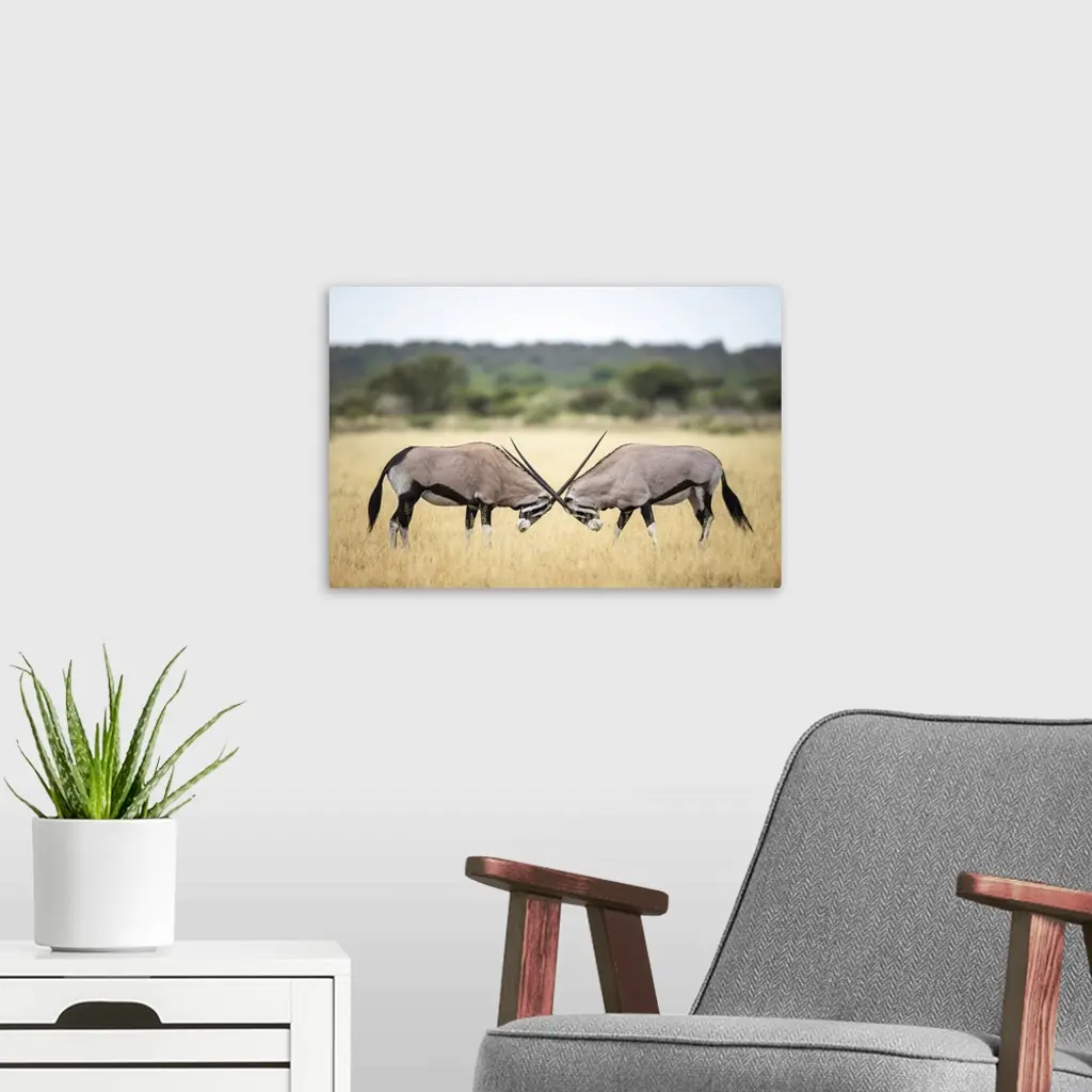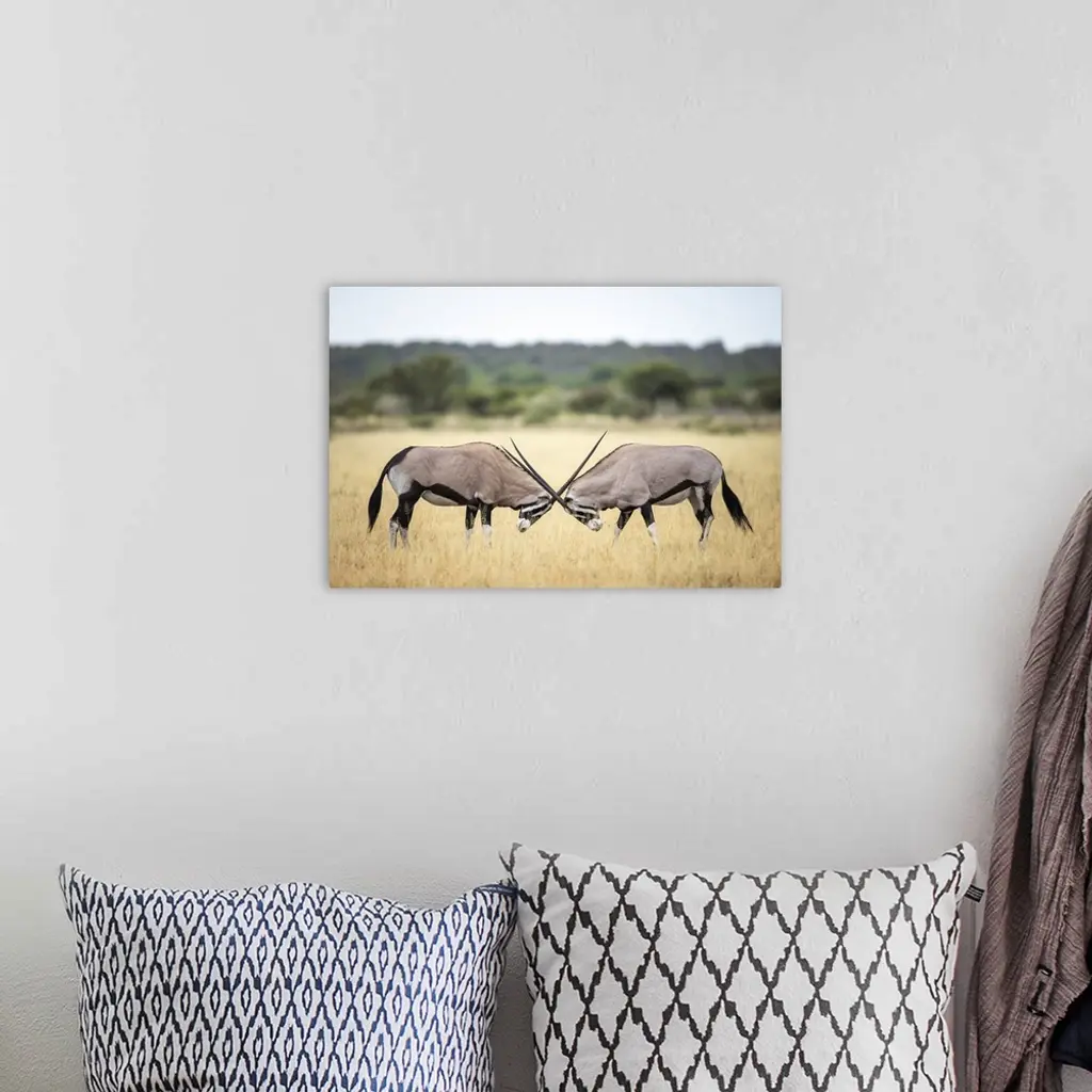 Oryx Fighting, Kalahari Desert, Botswana wall art for home and office decor. Discover canvas art prints, photos, mural, big canvas art and framed wall art in GreatBigCanvas.com's varied collections.