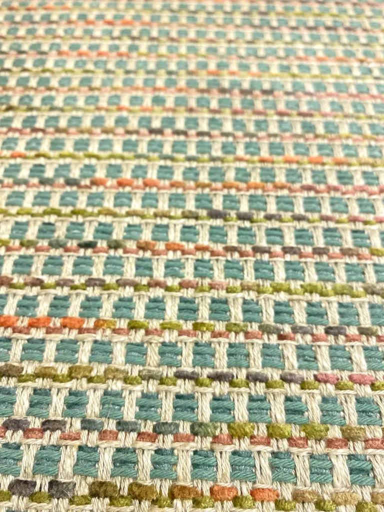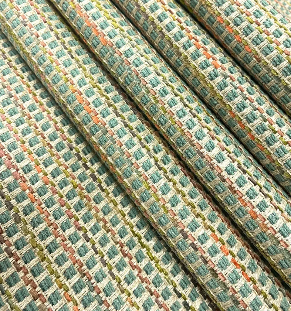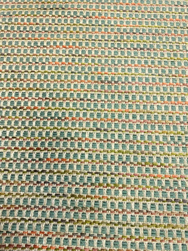 55” wide Osborne Little Sarangi NCF 4420-02 Italian tweed upholstery fabric in teal, coral and green. Price is per yard.. NAME Sarangi CARE PATTERN NO NCF4420 USAGE SYMBOLS WIDTH CM (INS) 130 (51¼) RUB TEST 55,000 REPEAT CM (INS) 3 (1¼) WEIGHT GSM 750 CONTENT 58% VI; 18% LI; 18% CO; 6% PC COUNTRY OF ORIGIN Italy FLAME RETARDANT UK - BS5852 Cigarette Upholstery FR TREATABLE Treatable to BS5852 Crib 5 Upholstery