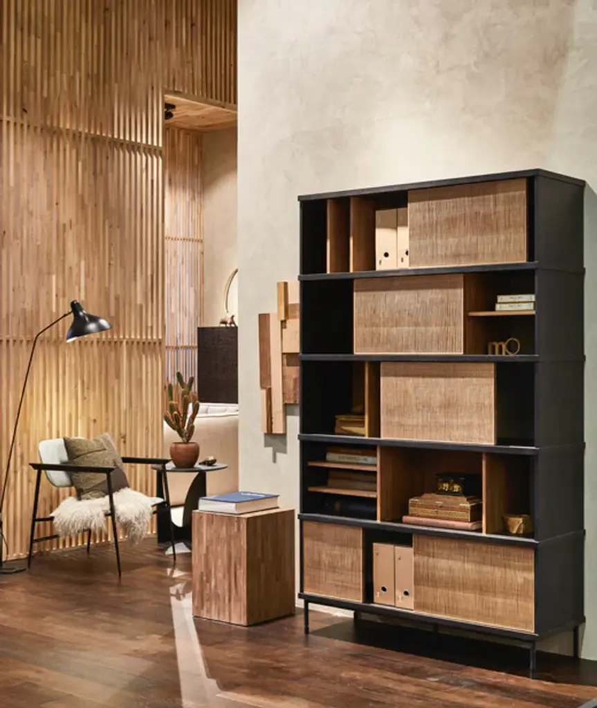 The Oscar rack, designed by Alain van Havre, immediately attracts attention with its atypical compartment division. Notice the exceptional grooves in the doors: each narrow groove was carefully hand carved, making every Oscar piece unique.
