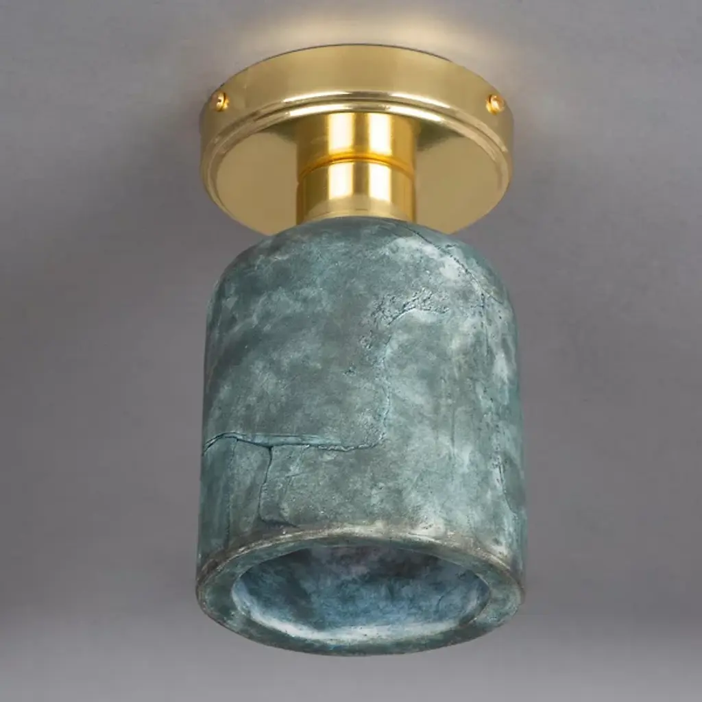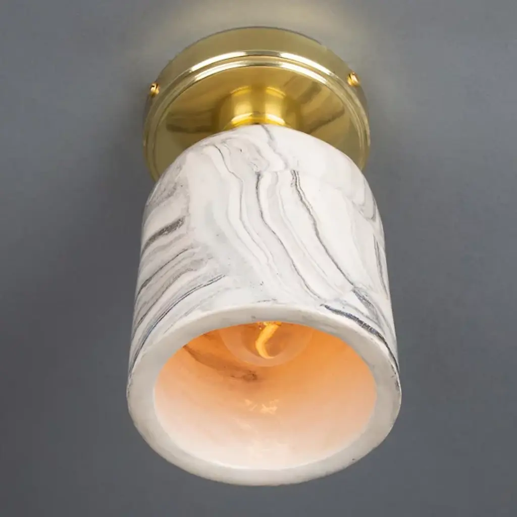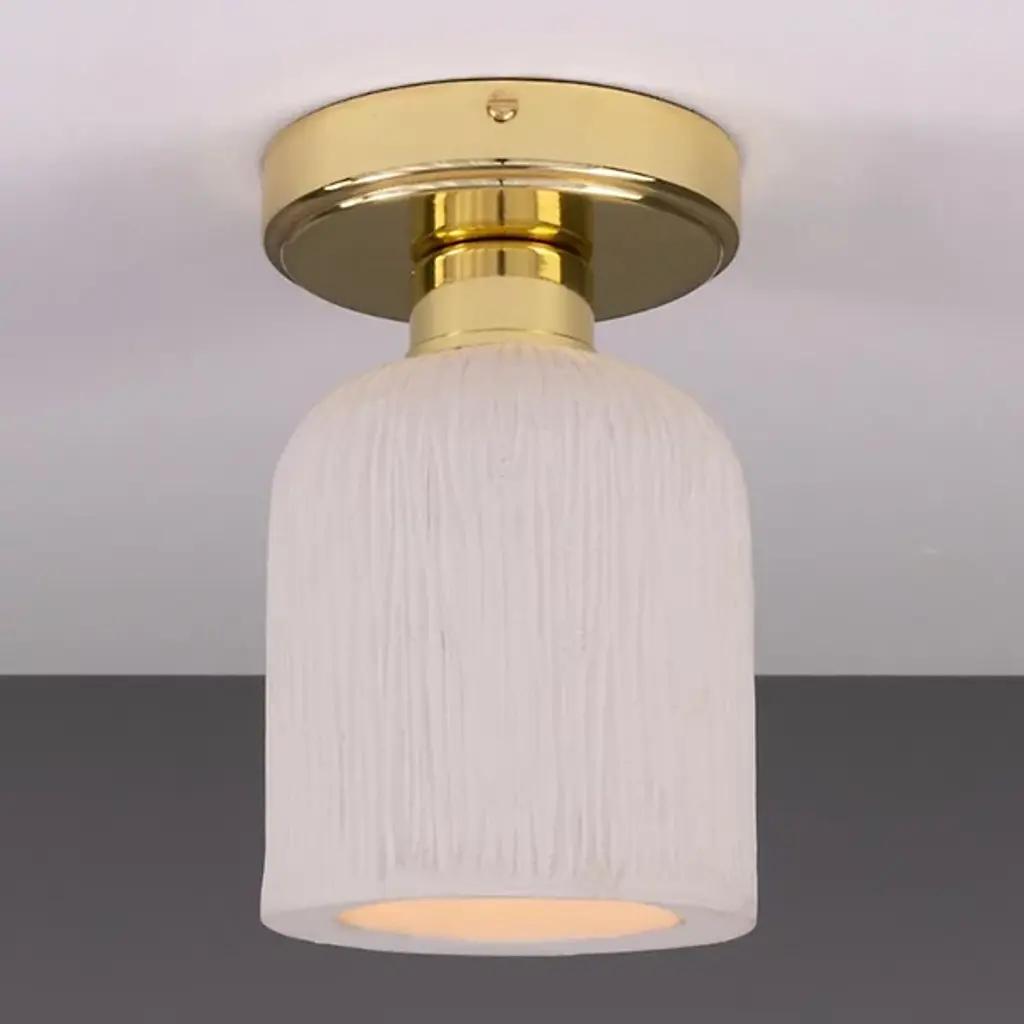 The Osier Semi Flushmount by Mullan Lighting brings a touch of handcrafted charm to any room. Made to order in Mullan Village, Ireland, it features a beautifully crafted ceramic shade supported by a slender brass arm. The warm, rich metal contrasts perfectly with the natural, textured finish of the handmade shade. This cozy fixture casts a focused pool of light below while creating a gentle, radiant glow on nearby walls, perfect for adding warmth and character to any space.