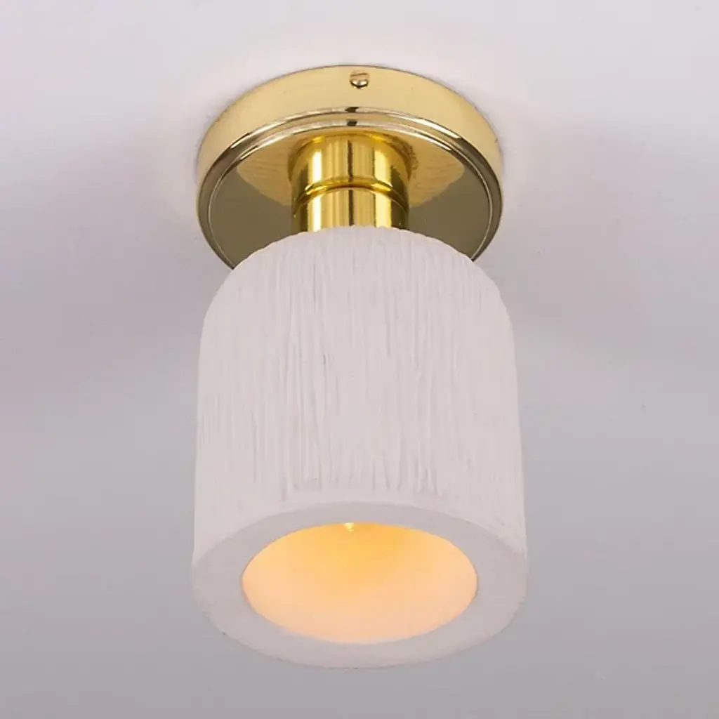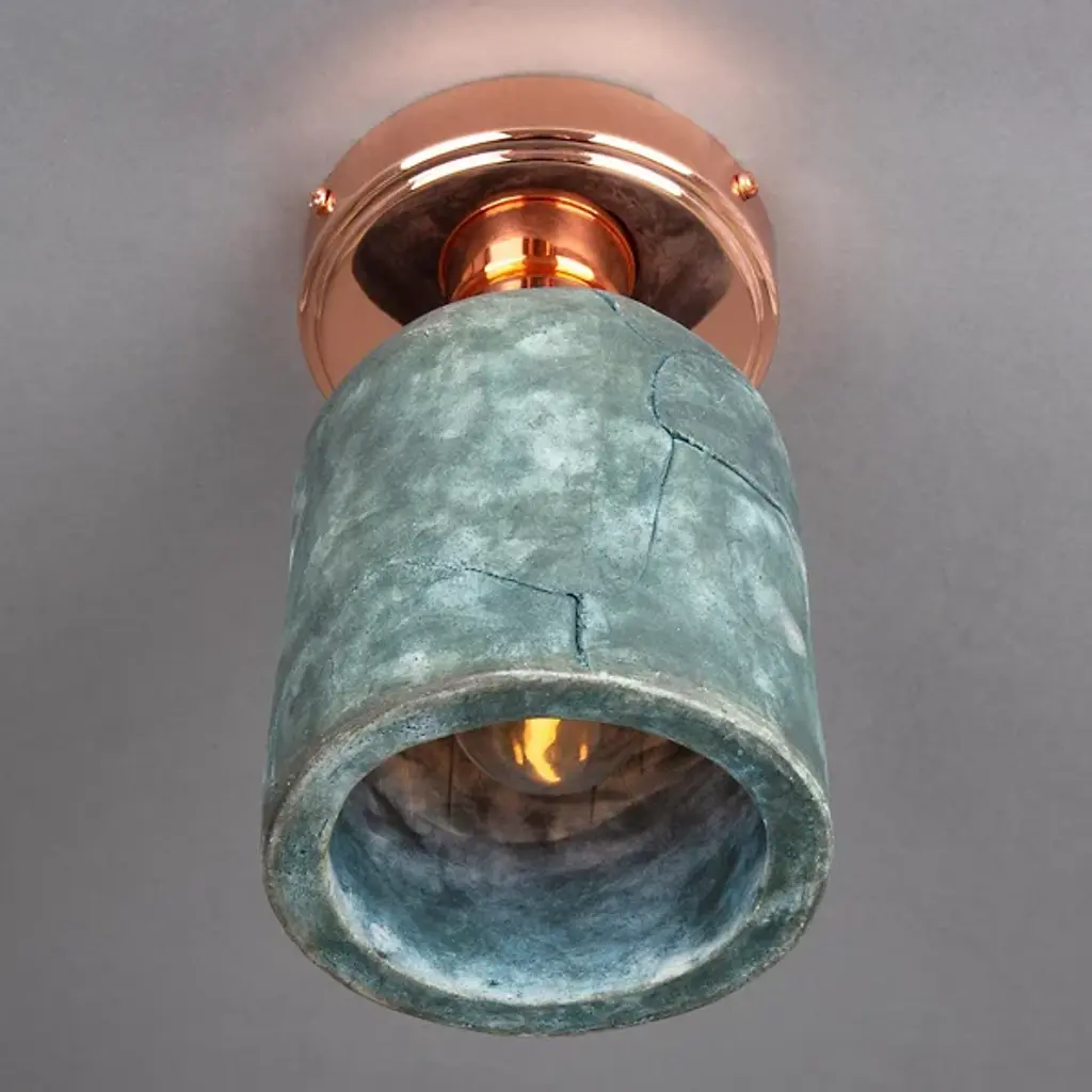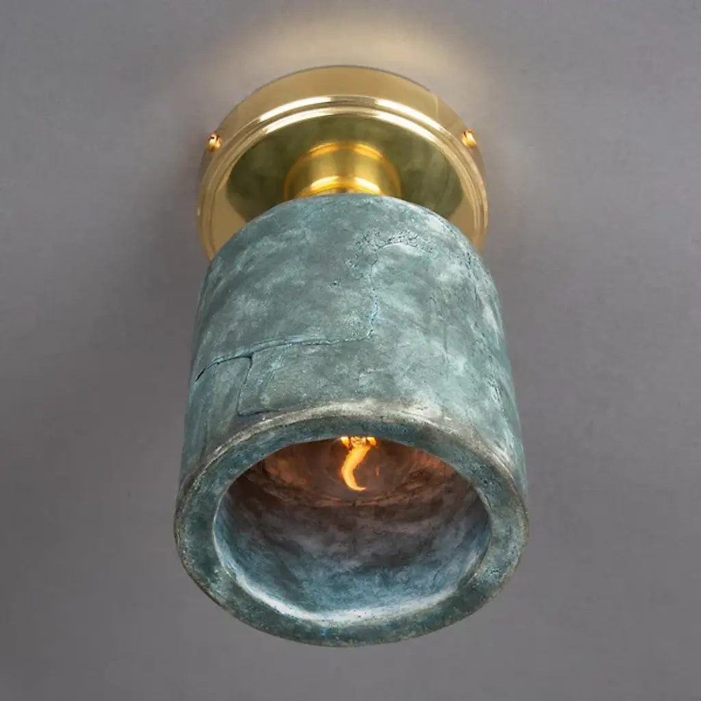 The Osier Semi Flushmount by Mullan Lighting brings a touch of handcrafted charm to any room. Made to order in Mullan Village, Ireland, it features a beautifully crafted ceramic shade supported by a slender brass arm. The warm, rich metal contrasts perfectly with the natural, textured finish of the handmade shade. This cozy fixture casts a focused pool of light below while creating a gentle, radiant glow on nearby walls, perfect for adding warmth and character to any space.