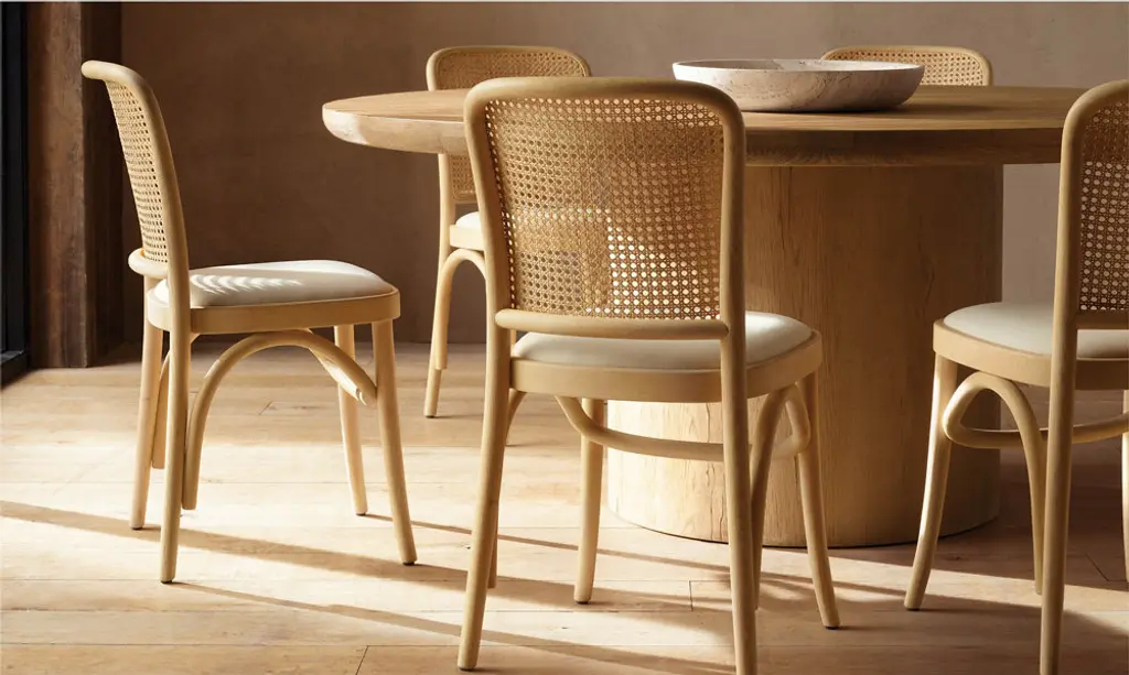 Oslo by Harrison and Nicholas Condos is inspired by the simplicity of organic midcentury design. Defined by rounded edges and a pedestal base, the tables are meticulously handcrafted of wire-brushed American white oak. A high-heat finishing process creates distinctive cracking, further enhancing the wood's rich texture and unique grain patterning – an elegant juxtaposition of rustic and relaxed, minimalist and refined. SHOP THE ENTIRE COLLECTION