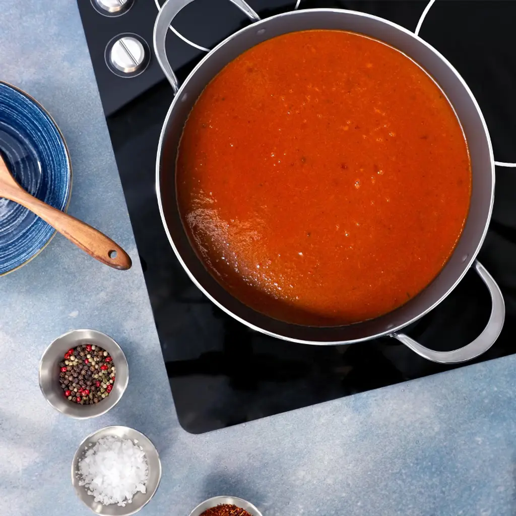 Introducing the Oster Cartagena 7.4 Quart Nonstick Aluminum Caldero with Lid, a kitchen essential designed for versatility and durability. Crafted from sturdy aluminum with a nonstick coating, this round caldero ensures effortless cooking. Its rounded edge facilitates easy stirring and serving, while the included aluminum lid seals in flavor and moisture for delectably tender dishes. Compatible with gas, halogen, electric, and vitroceramic stove-tops, this caldero adapts seamlessly to various cooking environments. For maintenance, it's recommended to hand wash this caldero to preserve its nonstick properties and extend its lifespan. Elevate your culinary prowess with the Oster Cartagena Caldero, an indispensable companion for all your cooking endeavors.