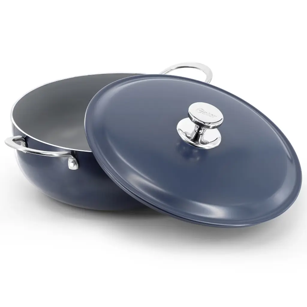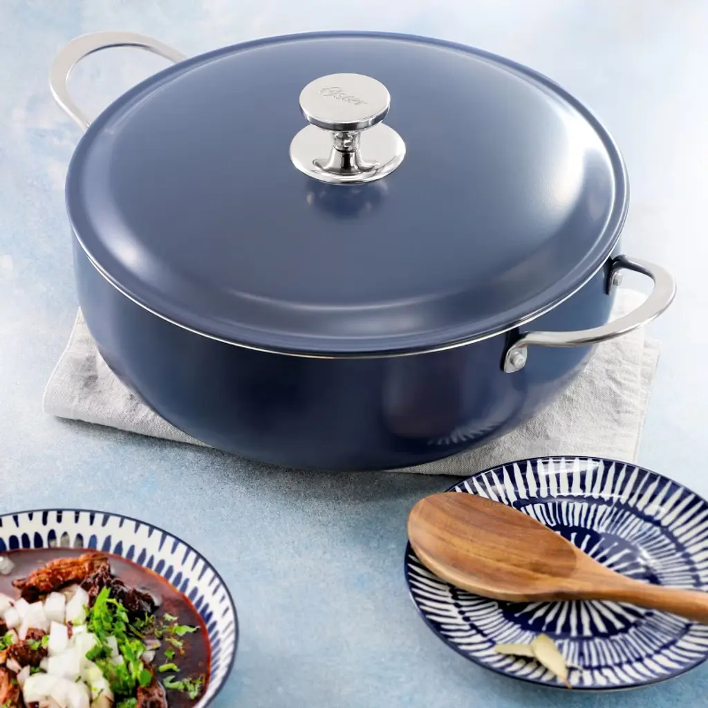 Oster Cartagena 9.3 Quart Nonstick Aluminum Caldero With Lid In Dark Blue