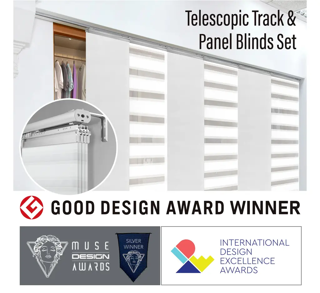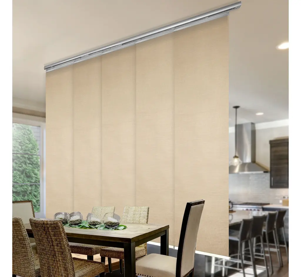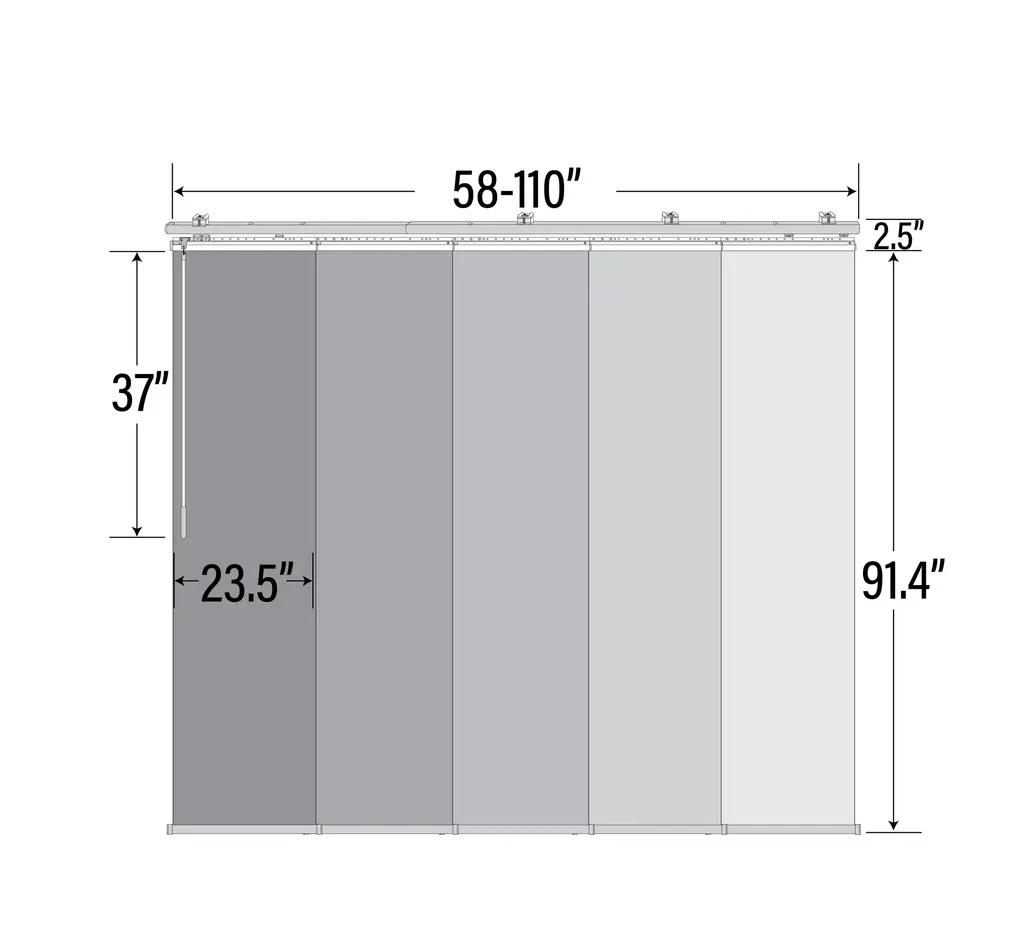 Central Design Products is pleased to introduce a new innovative panel track that offers easy 2-way installation, adding an alluring style and refined touch to your home decor. The single rail design of the track is sleek, compact, and reduces the overall footprint and weight of the installation, eliminating bulky, intrusive window treatments. Adjusting the panel height is a breeze � simply trim the panel, re-attach the liner, and install the panel weight. Detailed instructions are included.The panel track also features a patented slider design, made with aluminum and fitted with bearings that allow for durable and smooth operation. The sliders are stacked closer together than conventional panel tracks, reducing light bleed coming from the gaps between panels. This track has endless uses from dividing rooms, garages, offices, and closets to decorating windows and patios. Available in larger sizes including 8, 10, and 12 panels.Extends from 58-110� wide.Each panel measures 23.5" wide and 91.5" tall, with a total installation height of 94" (includes the 2.5" rail track).The track can be wall or ceiling mounted.The panels can stack on the left or the right.The clearance from the wall is extendable from 1.25� to 3.25� and projection from the wall is extendable from 3� to 4.25�.Osweald panel is made from 70% Polyester 30% Acrylic, with a blackout shade.