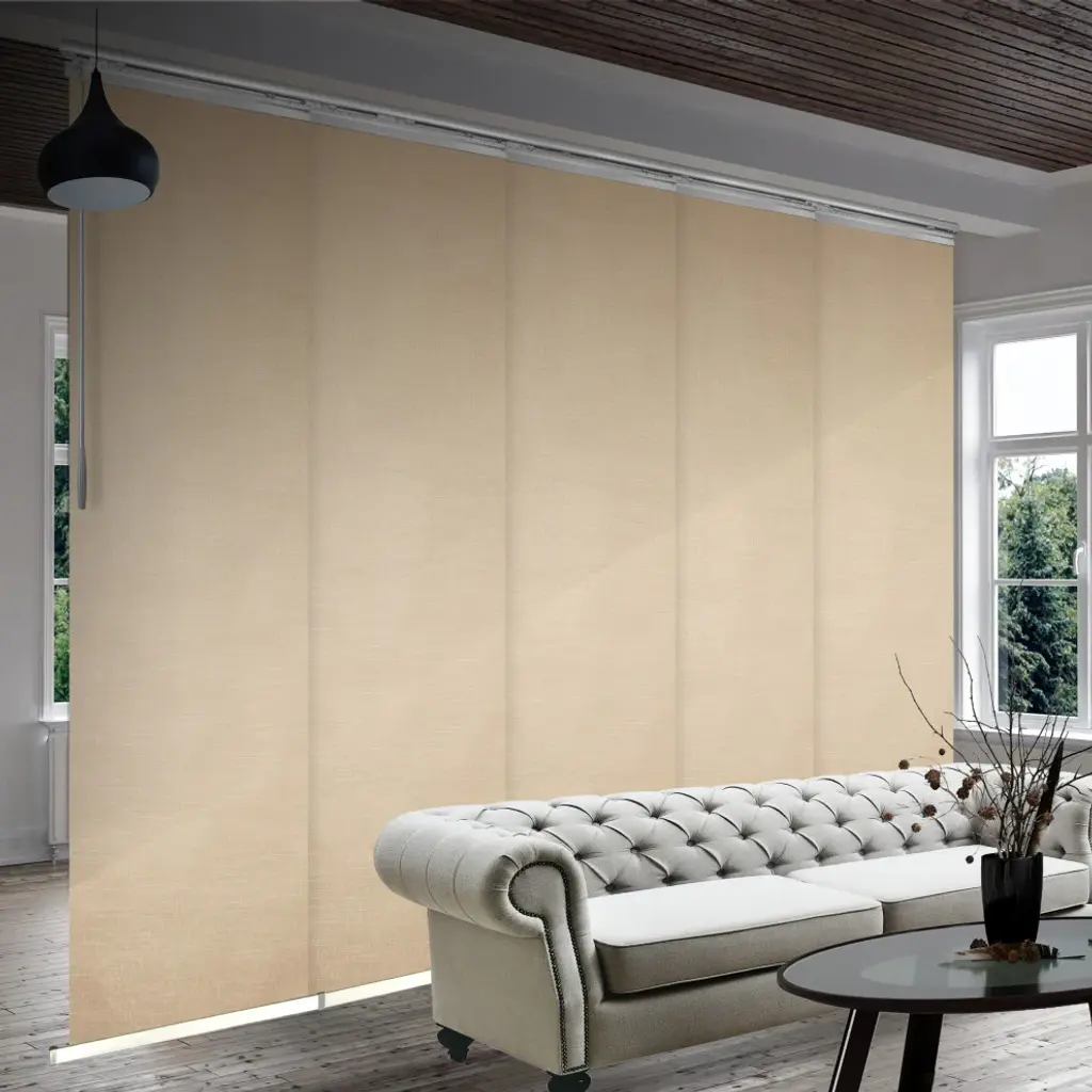 Central Design Products is pleased to introduce a new innovative panel track that offers easy 2-way installation, adding an alluring style and refined touch to your home decor. The single rail design of the track is sleek, compact, and reduces the overall footprint and weight of the installation, eliminating bulky, intrusive window treatments. Adjusting the panel height is a breeze � simply trim the panel, re-attach the liner, and install the panel weight. Detailed instructions are included.The panel track also features a patented slider design, made with aluminum and fitted with bearings that allow for durable and smooth operation. The sliders are stacked closer together than conventional panel tracks, reducing light bleed coming from the gaps between panels. This track has endless uses from dividing rooms, garages, offices, and closets to decorating windows and patios. Available in larger sizes including 8, 10, and 12 panels. Extends from 58-110� wide. Each panel measures 23.5" wide and 116" tall, with a total installation height of 118.5" (includes the 2.5" rail track). The track can be wall or ceiling mounted. The panels can stack on the left or the right. The clearance from the wall is extendable from 1.25� to 3.25� and projection from the wall is extendable from 3� to 4.25�. Osweald panel is made from 70% Polyester 30% Acrylic, with a blackout shade.