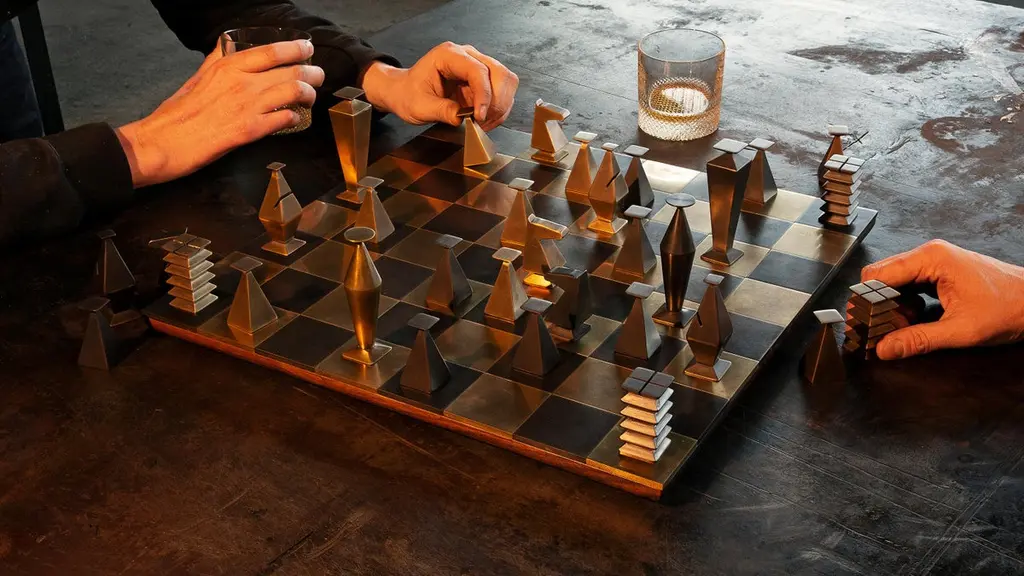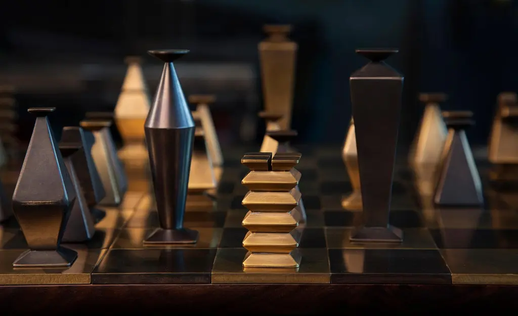 Otterburn Chess Set & Board — Solid Hand-Patinated Brass And Walnut