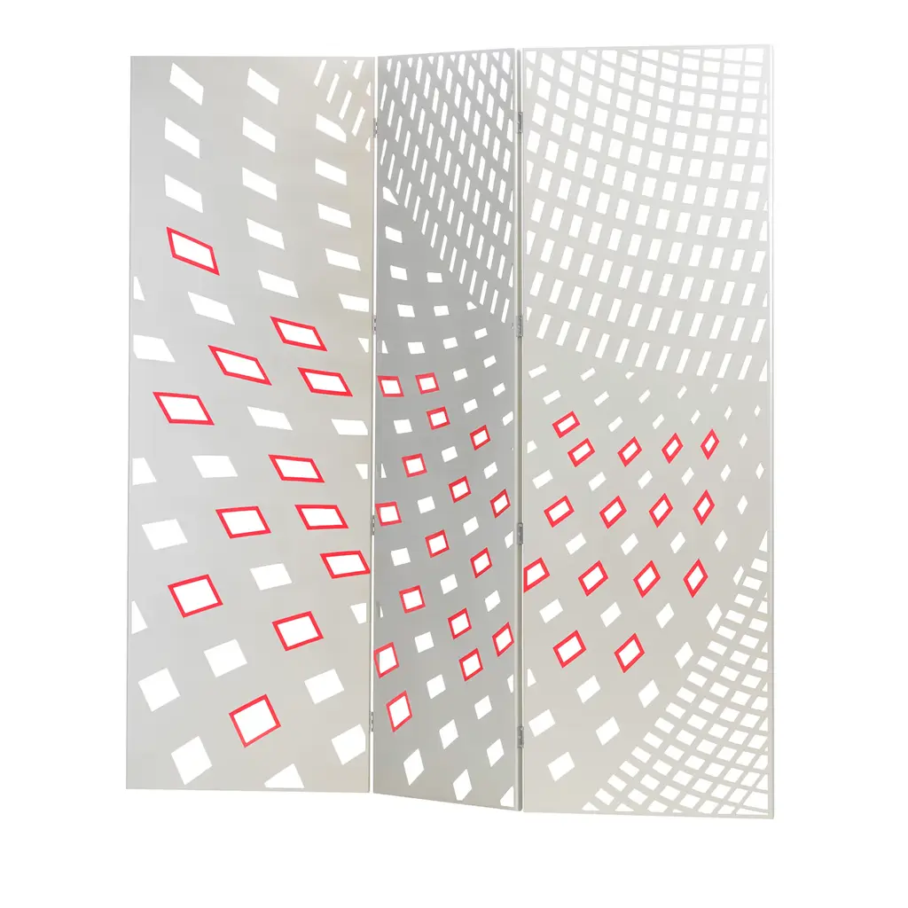 Evolution, change, dynamism: Otto divider is the expression of the square that freely comes out of the constraint of its shape and becomes other than itself. Like a perforated canvas with a pattern that appears in motion, Otto is an observation point that gives rhythm to the space with shapes and colors. Otto is the first Altreforme product entirely created by a circular economy approach, exploiting metal sheets no longer usable for the requirements of the automotive field.