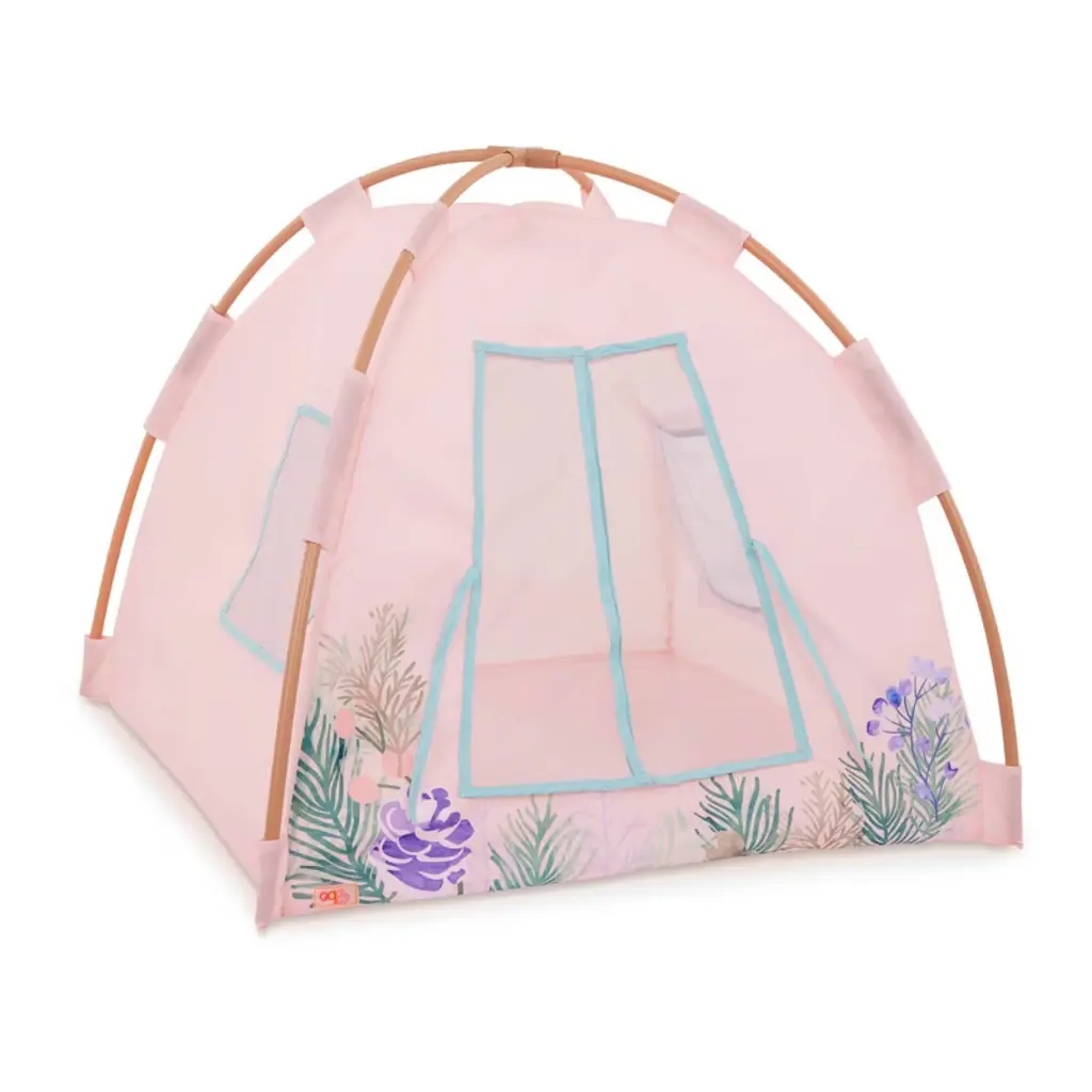 Camp out in style and gather friends for the ultimate adventure with the Our Generation Camping Nights accessory set for 18-inch dolls! This pink camping playset is the perfect home base for your doll's next camping trip. It has cute details like a lovely floral print, ties to keep the door flaps open, and 2 lookout windows. Plus, it comes with bonus play pieces like a bag of marshmallows, a roasting stick with a s'more, and a deck of cards. The Our Generation Camping Nights doll tent assembles in 4 easy steps; pictured instructions included. Perfect for kids who love to camp out with their favorite dolls. Our Generation doll accessories make a great gift for kids ages 3 years old and up (small parts), encouraging them to create their own unique stories. Compatible with most 18-inch dolls and accessories. Dolls sold separately.