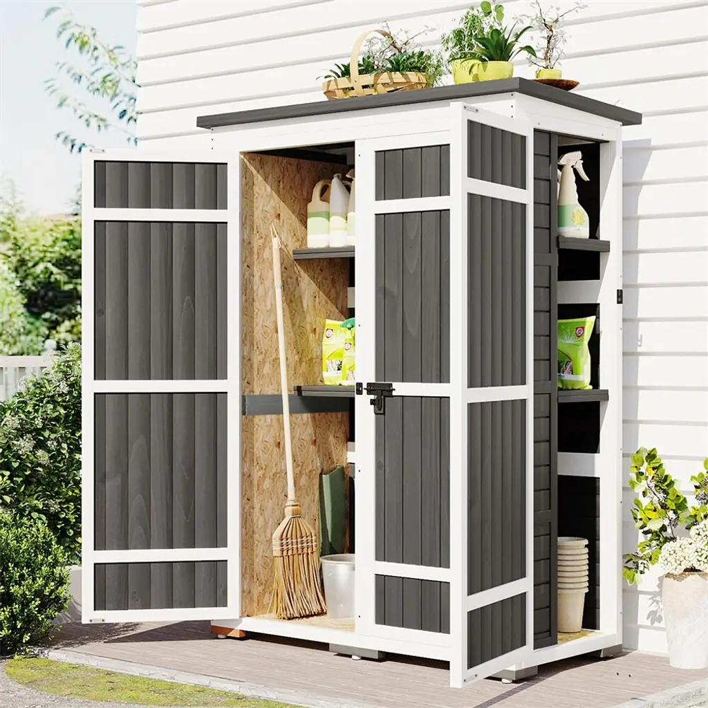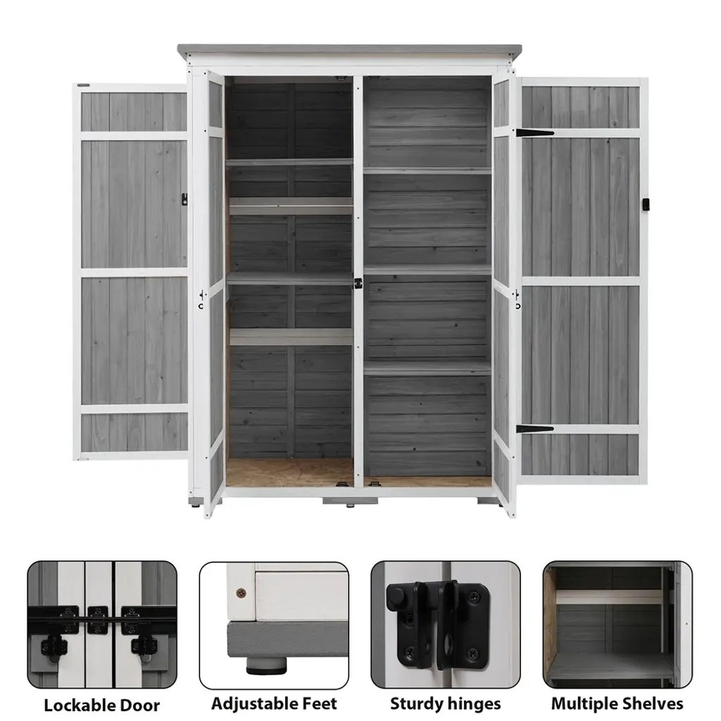 Outdoor 5.5ft Hx4.1ft L Wood Storage Shed,with Waterproof Asphalt Roof - Grey
