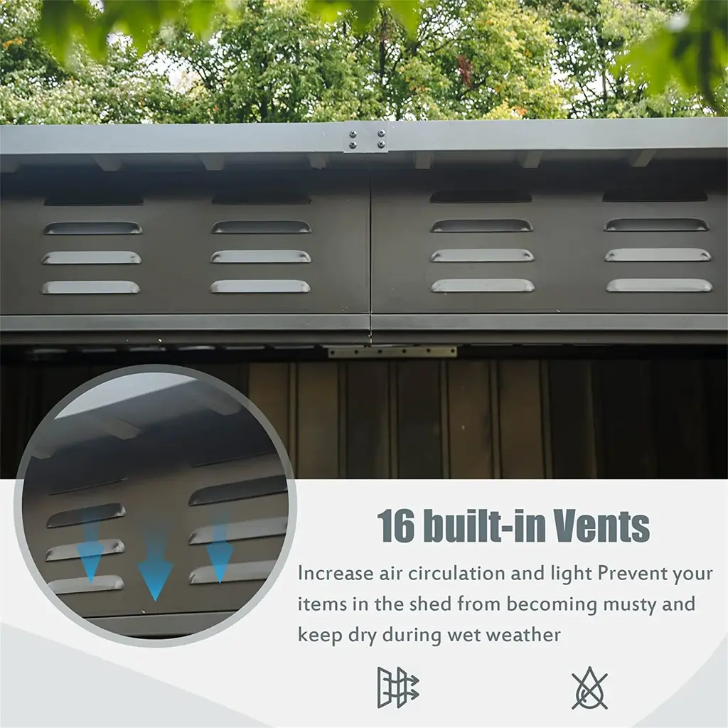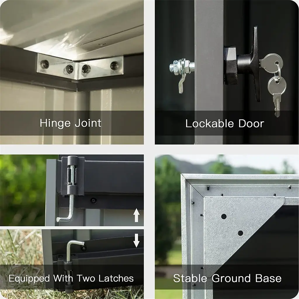 Backyard Storage Shed with Sloping Roof Galvanized Steel Frame Outdoor Garden Shed Metal Utility Tool Storage Room with Latches and Lockable Door (6x4ft, Black) Product Features【Notes】1.Manual measurement has been used, there may be some reasonable errort, thanks for your understanding.2.Due to factors such as display equipment and shooting environment, the color of the item may be slightly different from the picture, which is a normal phenomenon, please refer to the actual item3.Improper use of screws may cause the product surface damage! Please be careful when installing.4.It is recommended to put a layer of foam or soft cushion on the floor when installing to avoid scratching the floor.5.If the item has any defects, damage or missing parts, please contact us with pictures or videos so that we can understand your needs and help you quickly, and always remember to retain its original packaging to ensure any return requests. We will try our best to solve any problems you may have.6.If you receive the wrong product, please attach the product picture, the infographic of the outer package and the picture containing SKUs, so that we can verify and quickly deal with it for you【Maintenance & Notice】★About Finish:Liquids should be immediately blotted with a damp cloth. Do not use surface cleaners that could remove the finish.★About Hardware:Hardware may loosen over time; periodically check to make sure all connections are tight.★About Fasteners:Don't over-tighten fasteners, as this may cause distortion or breakage.★About Color:Real Product's Color may be a little different from the image due to the lighting or monitor's display.★About Size:Manual measurement has been used, there may be some reasonabl