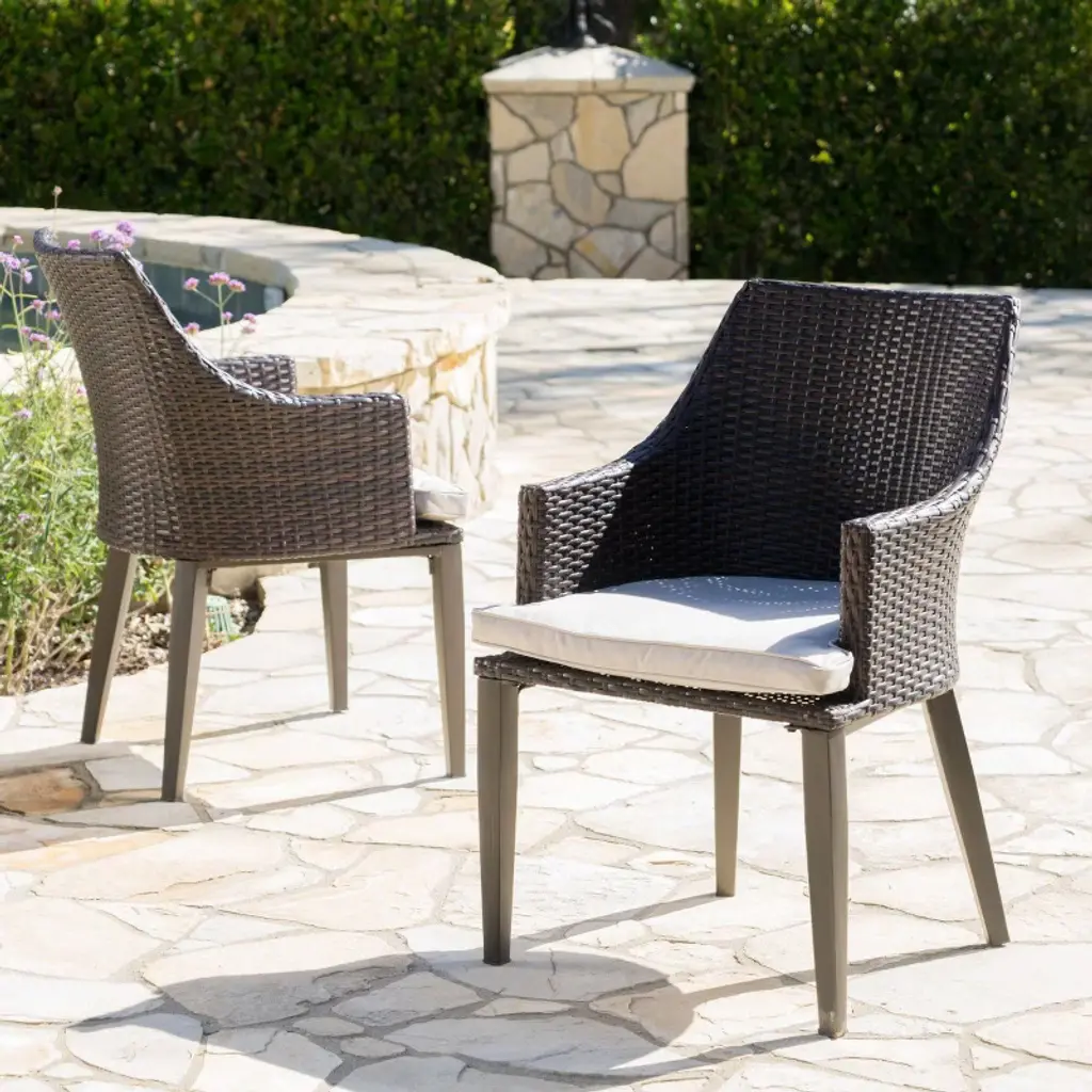 Outdoor Brown Pe Wicker Chair Set Of 2,rattan Lounge Arm Chairs With Waterproof Cushions,weather Resistant Patio Chair For Garden Or Balcony-koiai