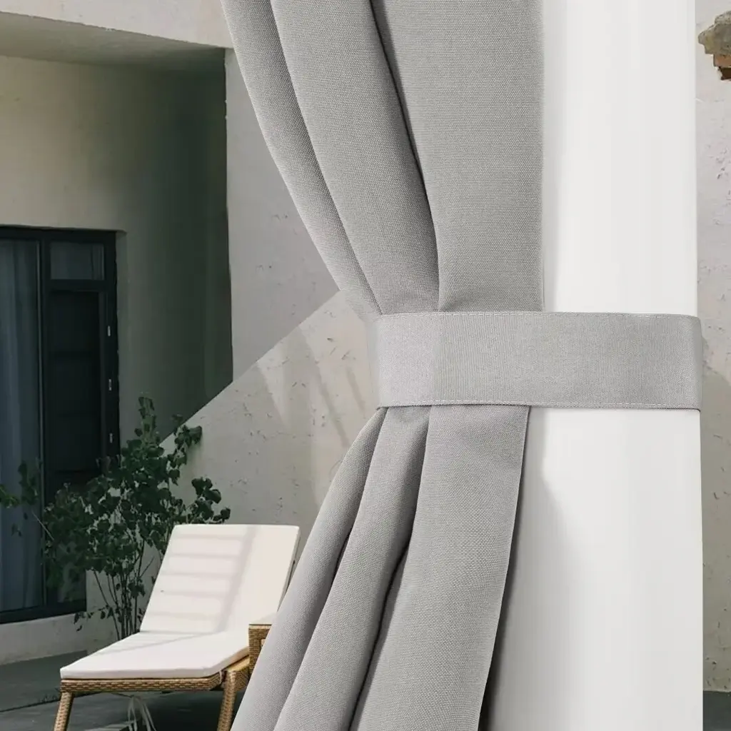 The Cabana Woven Solid panel is designed to enhance your outdoor experience while offering robust protection against the elements. Safeguard your outdoor areas from harmful UV rays with our specially treated fabric. This privacy panel reduces glare and provides shade while maintaining its stunning color. The 4"X1" tabs can be hung easily without removing the pole by simply attaching the tabs with the hook and loop fasteners. Each panel is outfitted with a wind proofing mini grommet in the bottom 2 corners and comes with a tieback. Perfect way to enhance your patio, gazebo, deck, beach house or outdoor living space. Features: Dimensions: