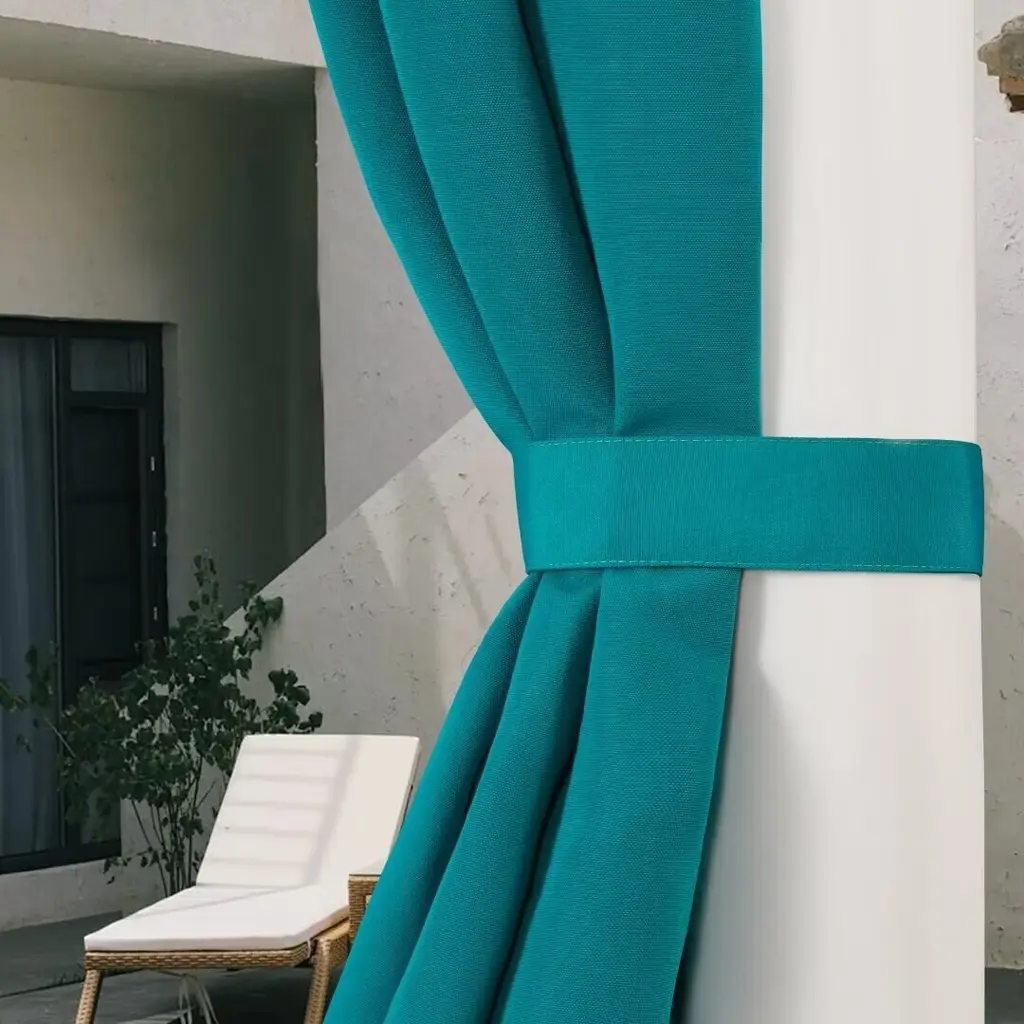 The Cabana Woven Solid panel is designed to enhance your outdoor experience while offering robust protection against the elements. Safeguard your outdoor areas from harmful UV rays with our specially treated fabric. This privacy panel reduces glare and provides shade while maintaining its stunning color. The 4"X1" tabs can be hung easily without removing the pole by simply attaching the tabs with the hook and loop fasteners. Each panel is outfitted with a wind proofing mini grommet in the bottom 2 corners and comes with a tieback. Perfect way to enhance your patio, gazebo, deck, beach house or outdoor living space. Features: Dimensions: