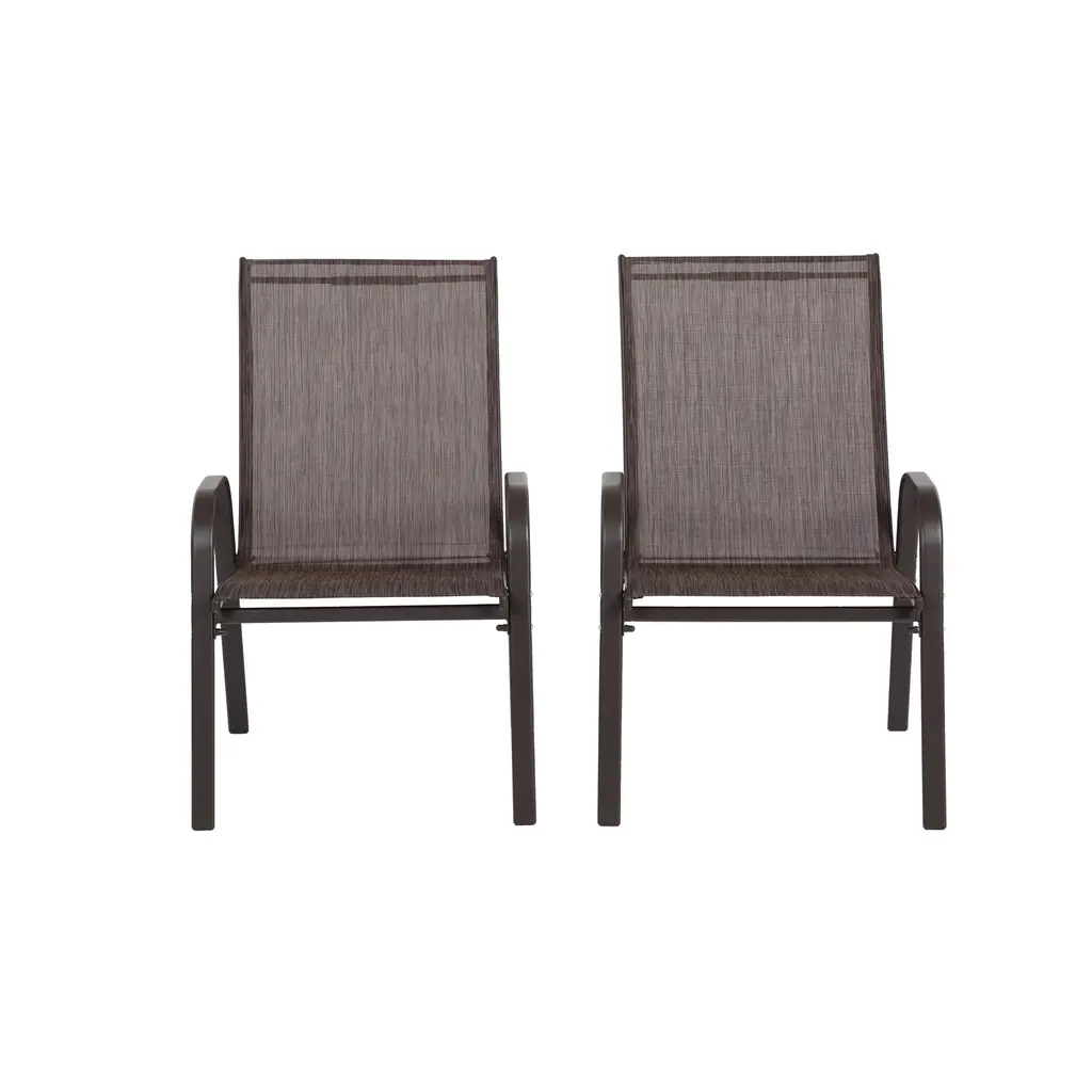 Outdoor Camping Chairs With Breathable Textilene Fabric, Set Of 2 - Brown