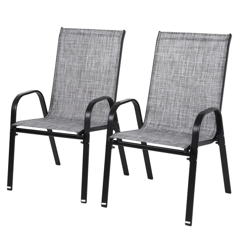 Outdoor Camping Chairs With Breathable Textilene Fabric, Set Of 2 - Grey