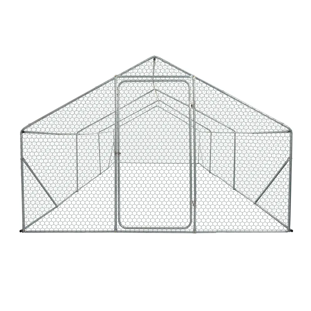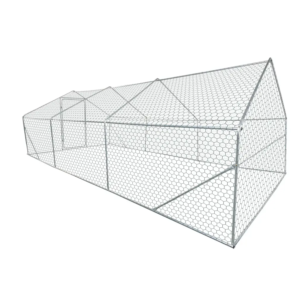 Chicken Run Are you ready to elevate your backyard farming experience? XPT035 Large Chicken Coop, a game changer for poultry lovers! Measuring an impressive 20ft x 10ft x 6ft, this spacious chicken coop is designed to provide the perfect home for your chickens, ducks and other poultry while ensuring they have plenty of room to roam and thrive. The XPT035 is made of high-quality metal tubes and durable wire mesh for long-term use. Its sturdy construction keeps your feathered friends safe and secure without worrying about escaping or predator attacks. The entire coop comes pre-assembled, making installation a breeze. Once built, it will transform your backyard into a giant poultry haven while taking up minimal space before assembly. Imagine the fun of watching your chicks cluck and roam freely in their new surroundings! The XPT035 allows you to customize the layout to suit your needs, whether you want to create a cozy nesting area or a spacious play area. Its thoughtful design not only prioritizes bird comfort, but also enhances the beauty of your backyard. Don't miss the opportunity to provide your poultry with a safe, spacious and stylish home. The XPT035 Large Chicken Coop is more than just a shelter; it's a sanctuary for your beloved birds. Order yours today and watch your backyard fill with the sound of happy, healthy poultry!