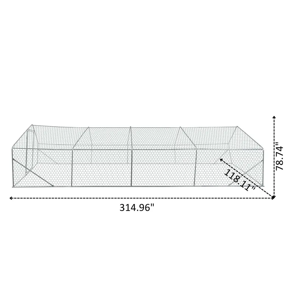 Chicken Run Are you ready to elevate your backyard farming experience? XPT036 Large Chicken Coop, a game changer for poultry lovers! Measuring an impressive 26' x 10' x 6', this spacious chicken coop is designed to provide the perfect home for your chickens, ducks and other poultry while keeping them safe and comfortable. XPT036 is made of high-quality metal tubes and durable wire mesh for long-term use. Its sturdy construction prevents your feathered friends from escaping and from wild animals. You can rest easy knowing your birds are in safe hands, allowing you to focus on what you love most - raising happy, healthy birds! One of the outstanding features of the XPT036 is its ease of assembly. The entire coop comes pre-assembled, making installation a breeze. Despite its large size, it takes up very little space before construction, allowing you to conveniently store it in your backyard until you're ready to create your poultry paradise. Once assembled, the coop becomes a vast haven for birds, giving them plenty of room to roam, play and thrive. The XPT036 is more than just a chicken coop; This is a customizable environment for your birds. Whether you want to create a cozy seating area or a spacious play area, you can arrange the interior layout to suit your needs. With this chicken coop, you have the freedom to design a space that reflects your passion for poultry farming. Upgrade your backyard with the XPT036 Large Chicken Coop today and give your birds the home they deserve! Experience the joy of raising poultry in a safe, spacious and stylish environment. Your feathered friends will thank you!