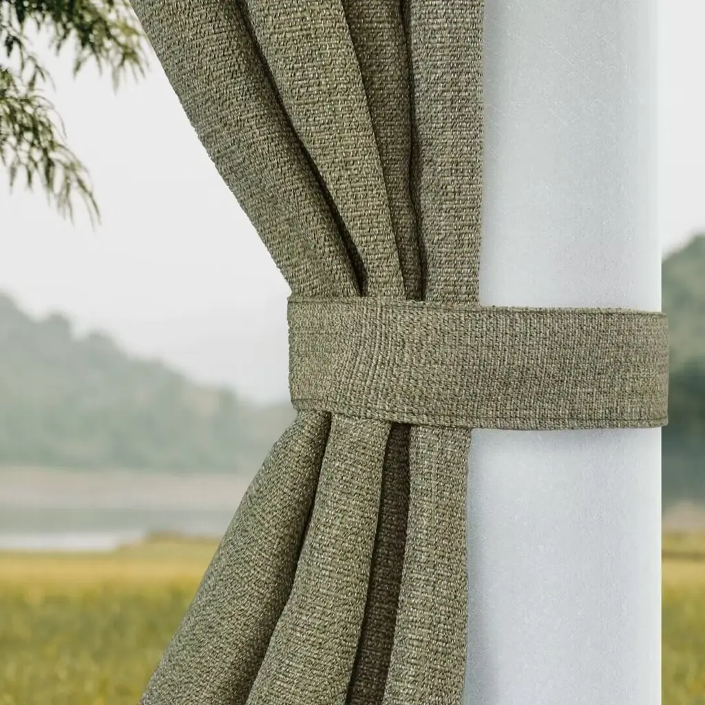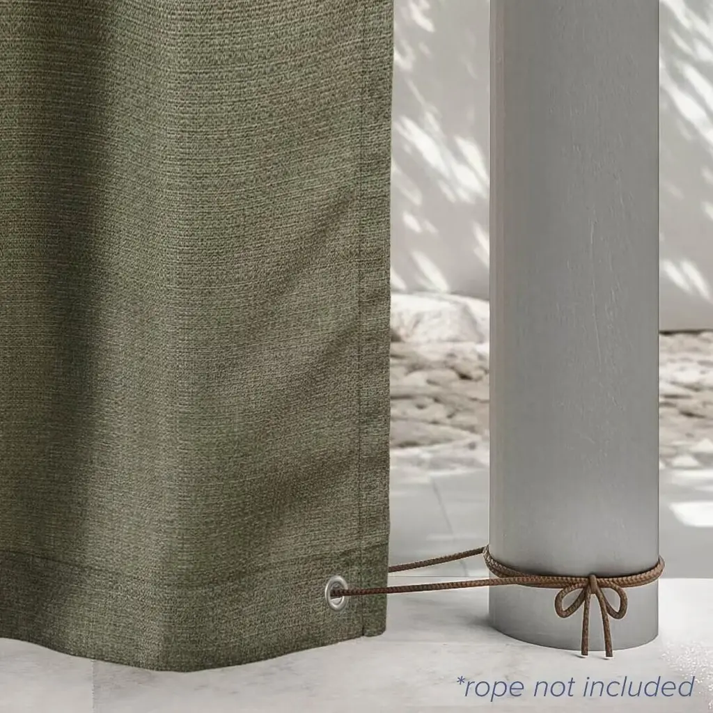 Enjoy your outdoor living space more with the charming Gobi tweed woven panel. This privacy panel provides shade and reduces glare while protecting you from UV rays. This durable grommet panel accents your area while being water repellent. Each panel is outfitted with a wind proofing mini grommet in the bottom 2 corners. Can be used for your cabana, patio, deck, open area and beach house. One tieback included for each panel. Features:Dimensions: