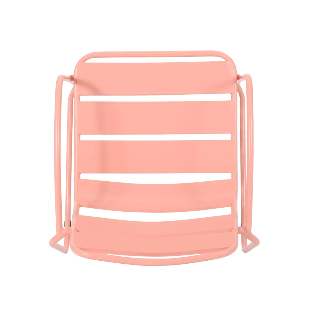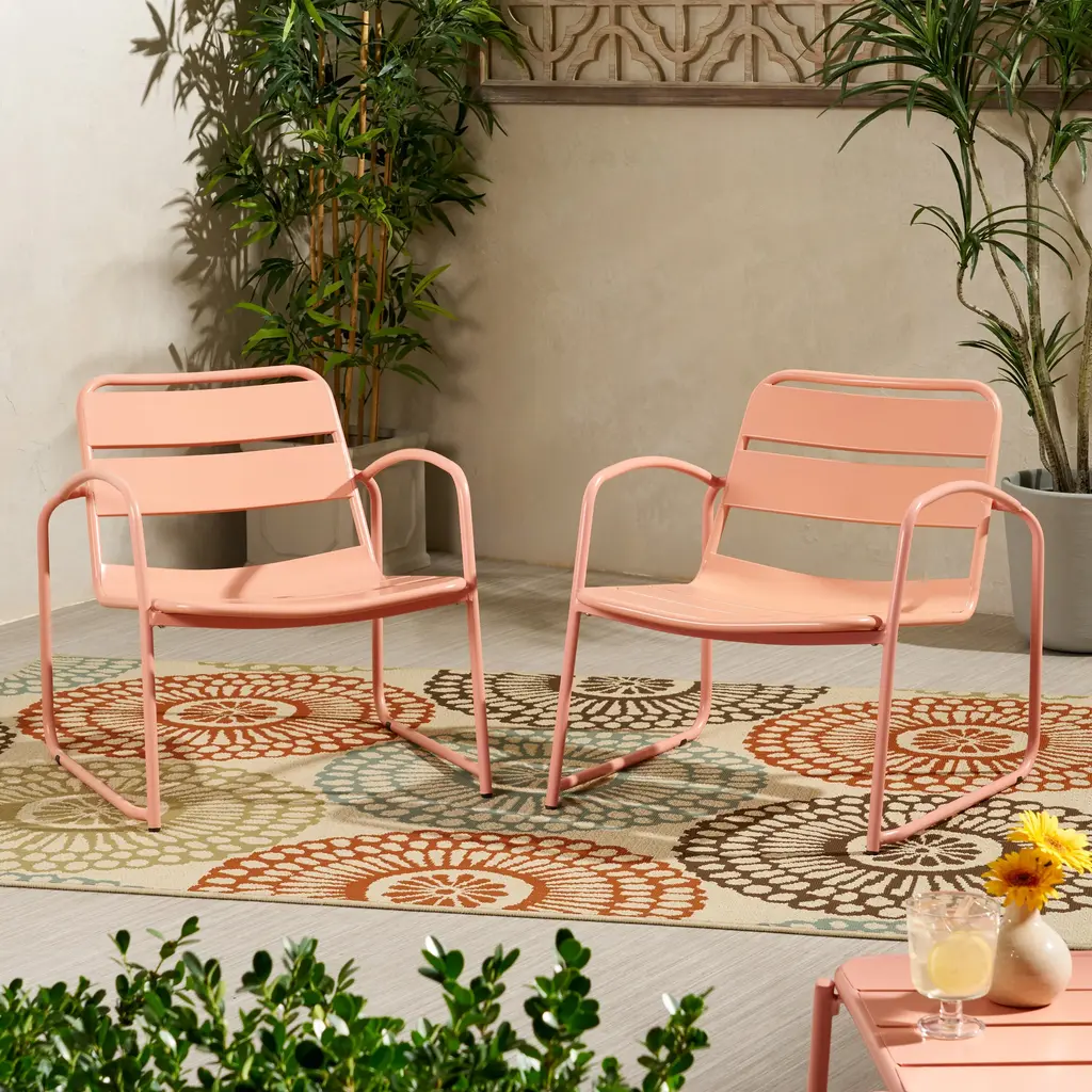 Upgrade your outdoor space with this 2 modern chairs, designed for both style and comfort. The sleek metal frame, crafted from powder-coated iron, ensures long-lasting durability. An open slat design enhances airflow, offering a breezy and comfortable seating experience. Perfect for any patio or backyard, this chair provides sturdy support with a chic, minimalistic look.