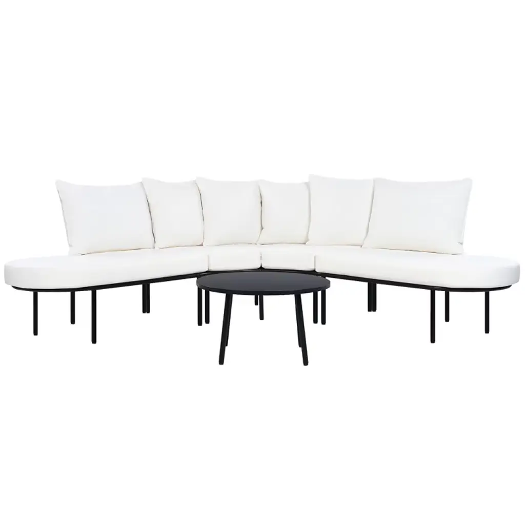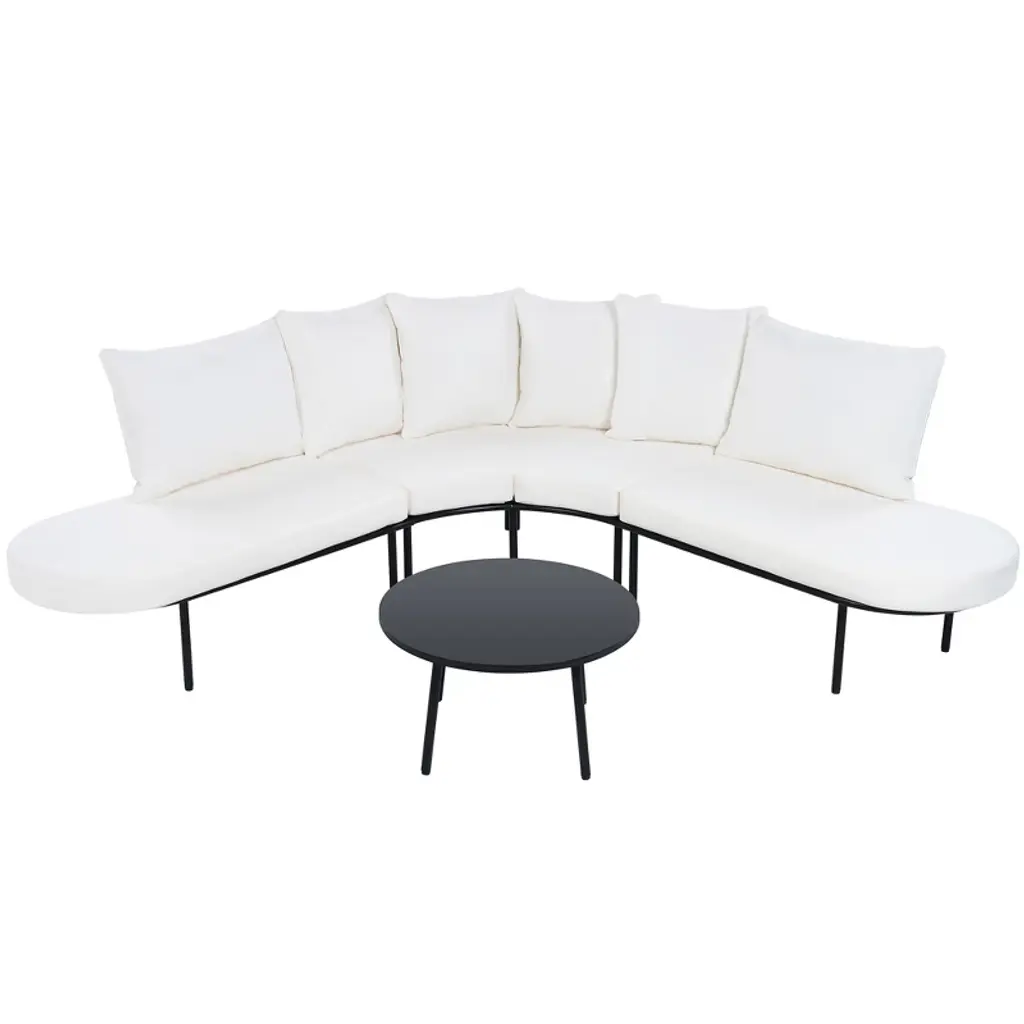 Outdoor Patio Iron Curved Sectional Sofa Set With Coffee Table And Cushions