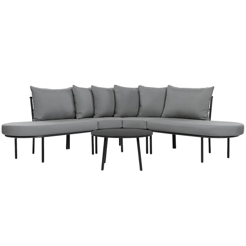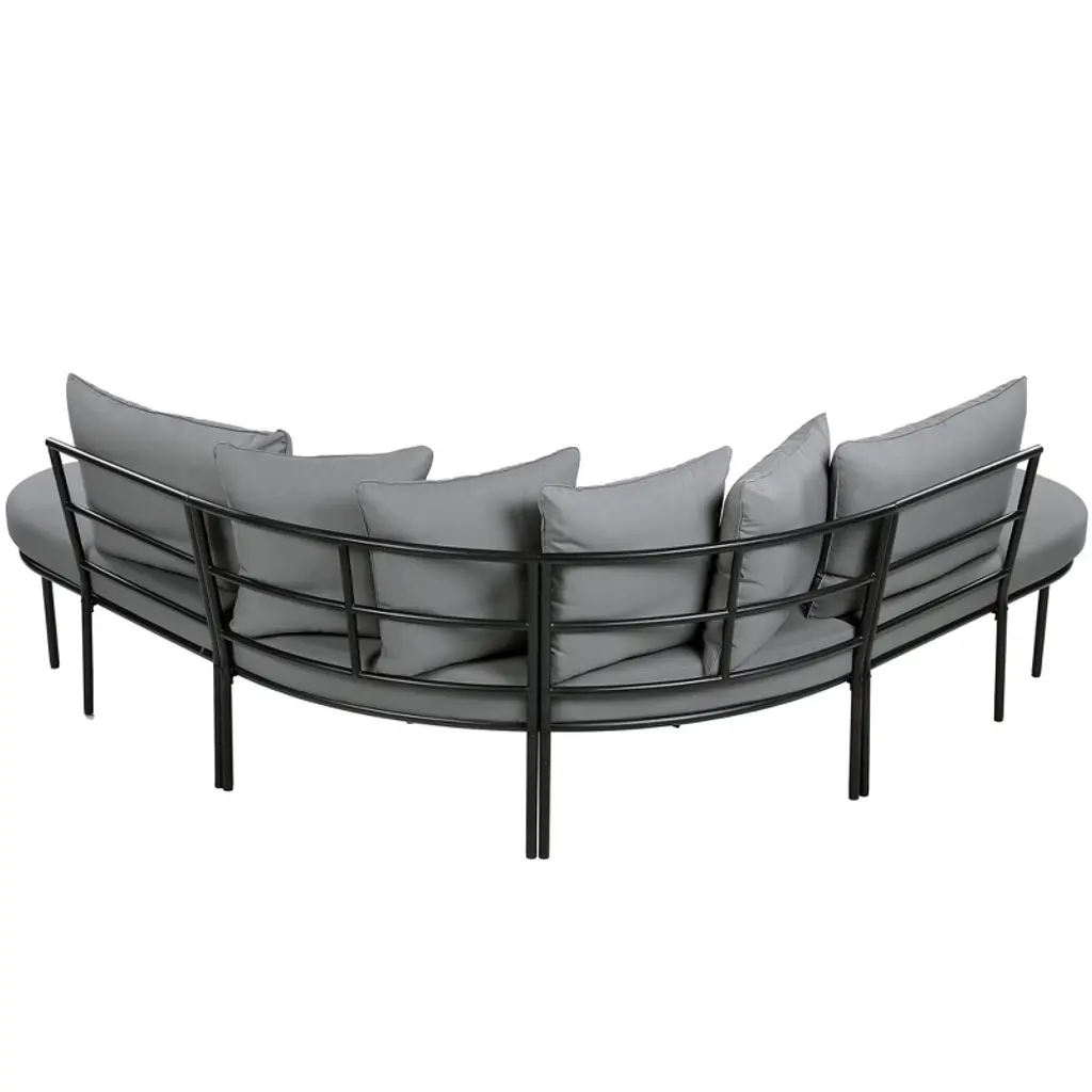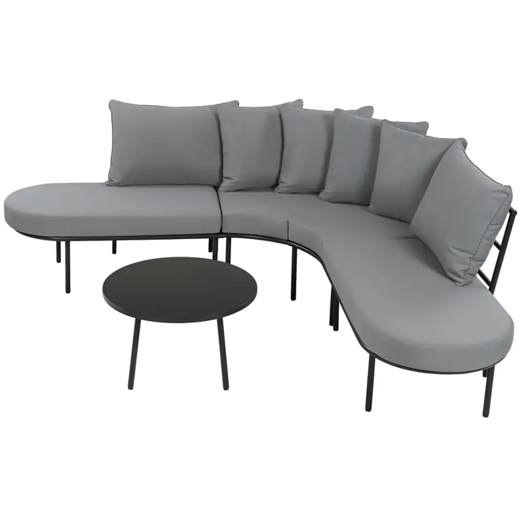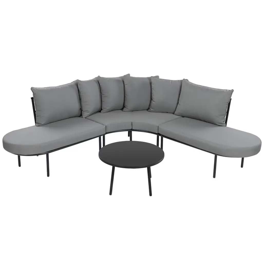 Outdoor Patio Iron Curved Sectional Sofa Set With Coffee Table And Cushions