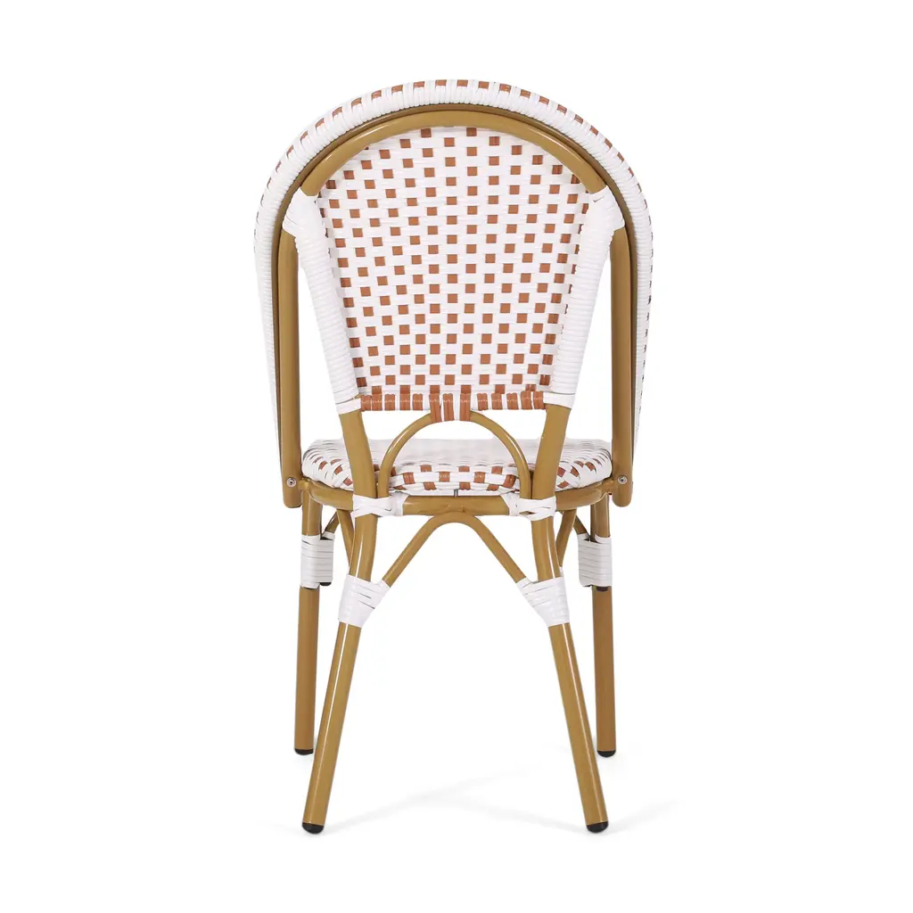 Outdoor Pe Ratten And Aluminum French Bistro Chairs, Set Of 2 - Rust Red,white