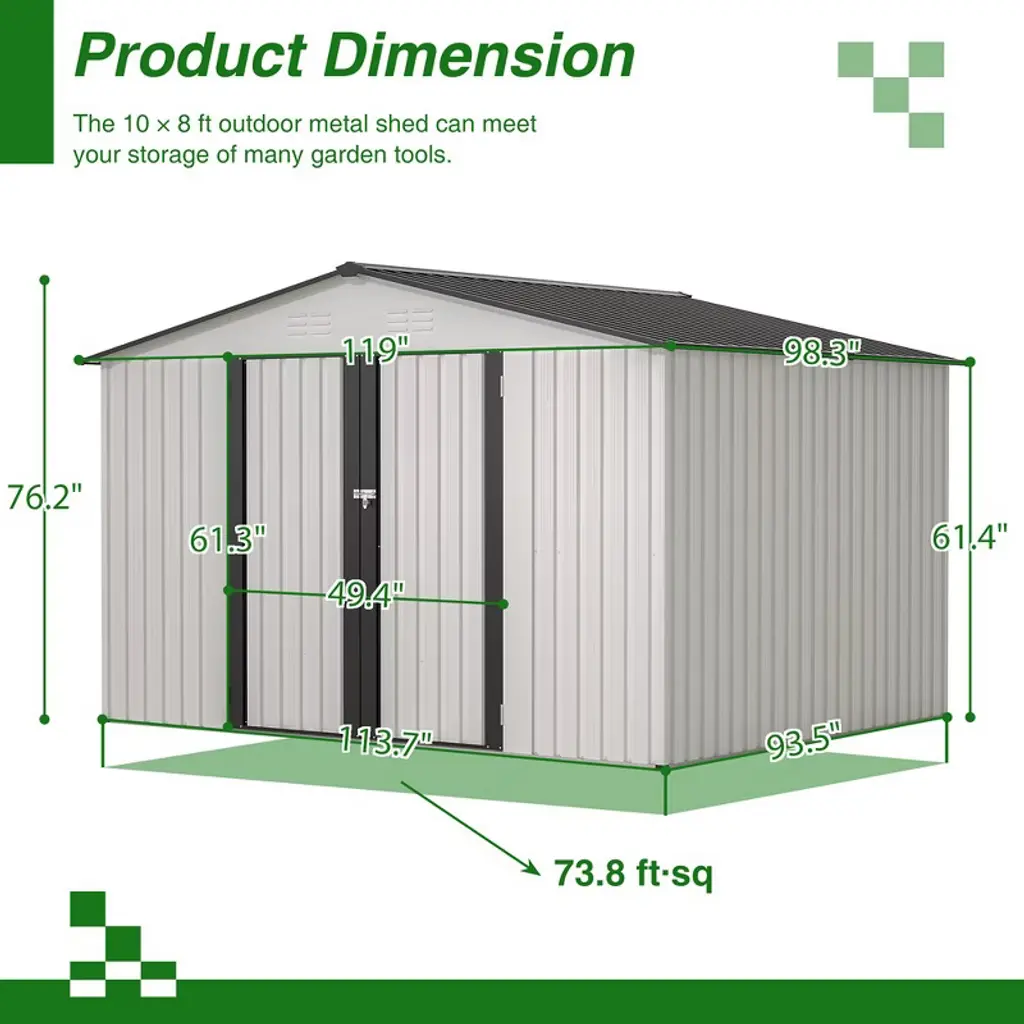 Outdoor Storage Sheds, Metal Outside Garden Storage Shed With Lockable Door, Spacious Waterproof Roof Design, Utility Tool Storage Shed,gray10*8