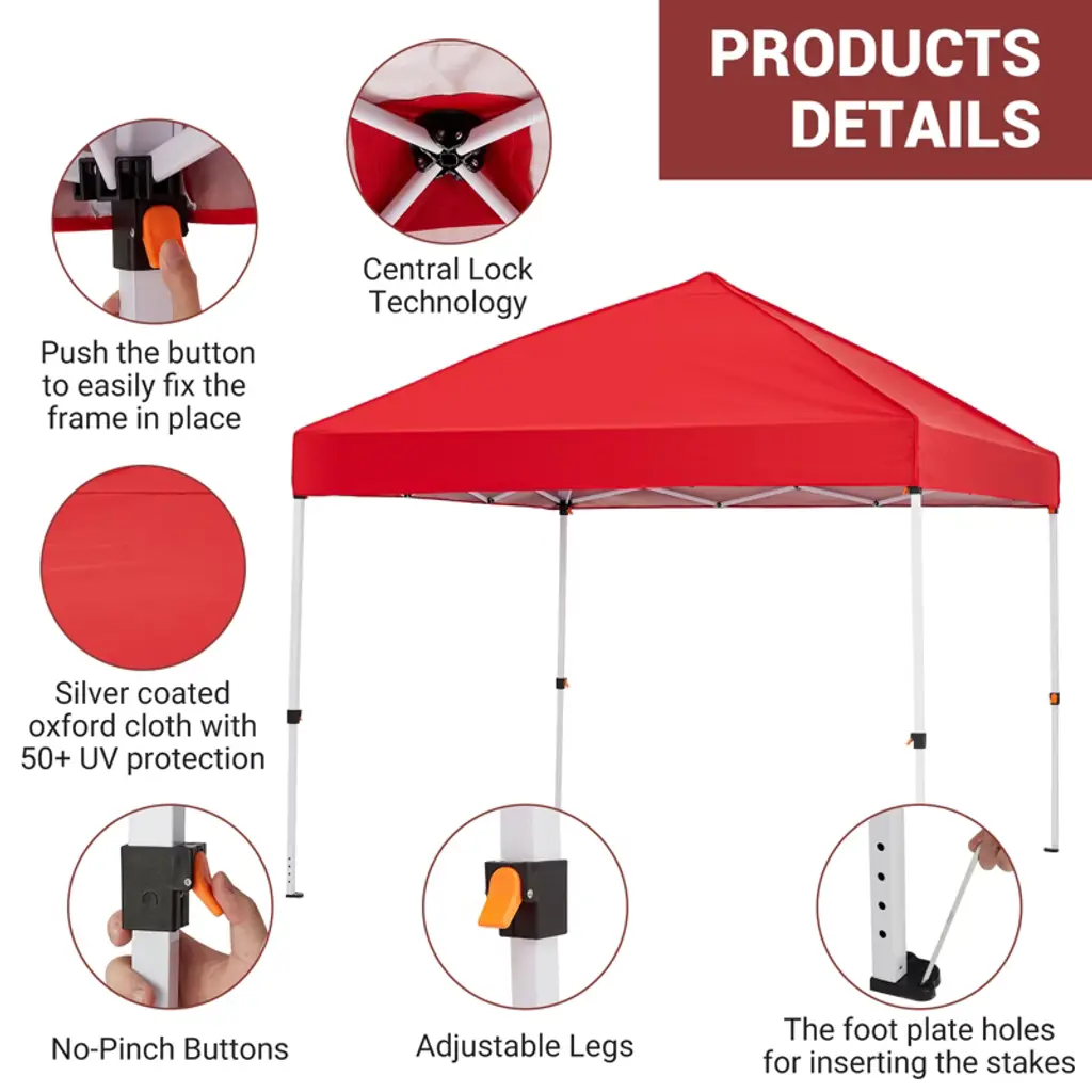 Outdoor Sun Shade, Pop Up Canopy For Events, Beach Tent With One Push Setup, Waterproof Sun Shelter Canopy With Wheeled Bag