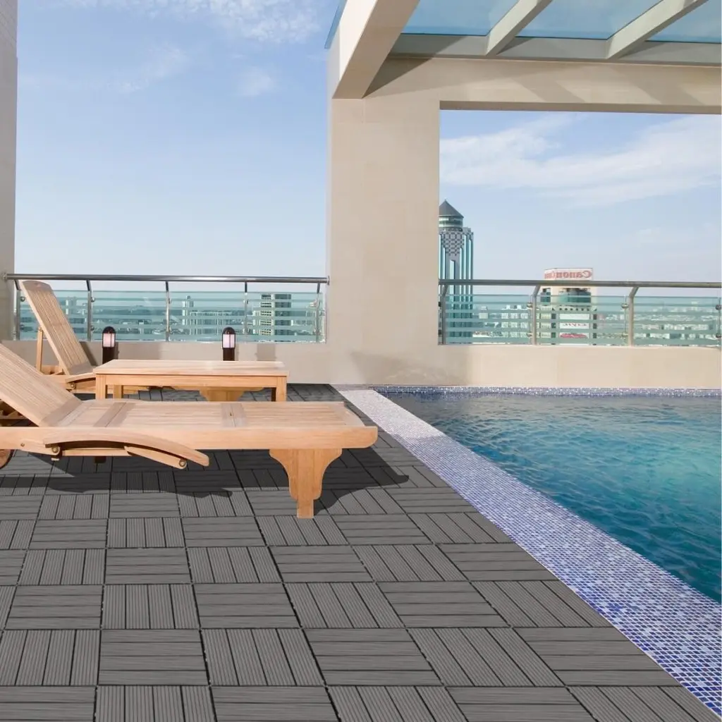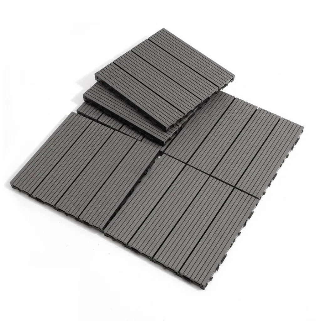 DescriptionOur Wood Plastic Composite Deck Tiles combine style and functionality for indoor and outdoor use. Featuring an interlocking design, they are easy to install without tools, glue, or nails. Measuring 12x12 inches, each tile includes four slats with gaps for drainage. Made from durable, slip-resistant, and water-resistant wood-plastic composites, these tiles are perfect for patios, balconies, and pool areas. Create an eco-friendly, beautiful space effortlessly with this fade-resistant solution.Product Features【Easy Installation】- No tools, glue or nails are required due to the interlocking design.【Versatile】-Suitable for indoor and outdoor spaces such as patios, balconies and pool areas.【Durable Material】- Made of high-quality wood-plastic composite material, it has excellent waterproof and anti-slip properties.【Optimal Drainage】- Each tile has four slats and the gap design allows for effective drainage.【Eco-friendly and Fade-resistant】- Easily create a sustainable and long-lasting beautiful space.Product InformationMain Material:Wood+PlasticProduct DimensionsAssembled Length (in.):12.00Assembled Width (in.):12.00Assembled Height (in.):1.00