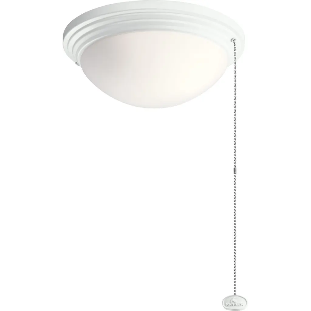 Add a stylish splash of light to your outdoor fans and bring a warm glow to your porticos and patios alike. The Outdoor Wet Fan Light Kit from Kichler extends down from a steel ring canopy. Its contours step slightly down to seat an energy-friendly and wet-listed LED lamp beneath a cased opal glass dome shade that easily transforms a wash of bright downlight into a pleasing glow.