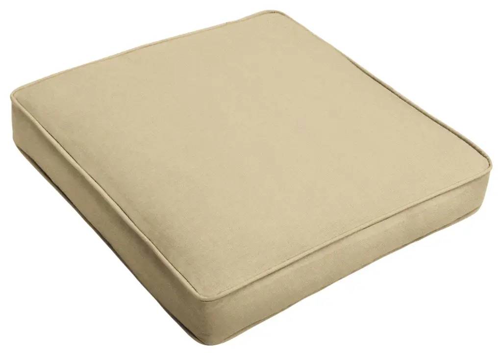 Step out on your porch or patio and start brightening it up with this beautiful new chair cushion! Featuring a stunning solid textured fabric in a rich, tan hue, this cushion will instantly enhance your space and help you comfortably enjoy the outdoors! Crafted out of a performance material right here in North America, this chair cushion is made to withstand the sun, rain and even stains so that all you have to do is sit back and relax! Outdura is the trusted brand for performance upholstery fabric for outdoor and indoor use.-Outdura fabrics are made from 100% solution-dyed acrylic with color pigments infused to the core of fibers, ensuring colorfastness, UV resistance, and durability.- • Ideal for casual indoor and outdoor use• Includes one (1) deep seating cushion• Cushion cover can be removed for easy cleaning• Available in a variety of sizes and colors to ensure that you find the perfect match for your furniture• Cushion only. Furniture not included.• • Made in North America•