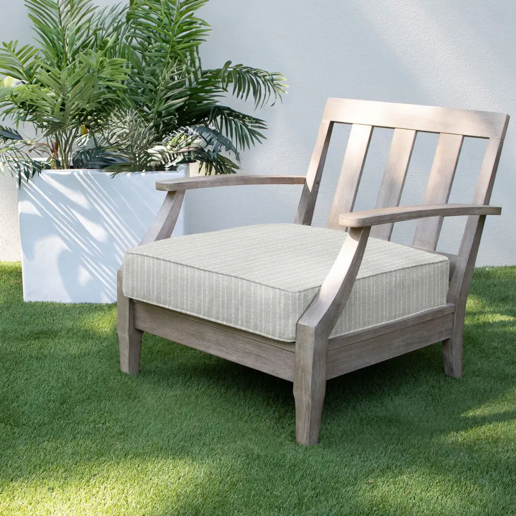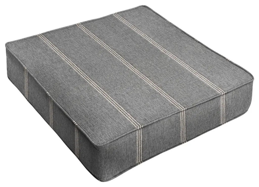 Step out on your porch or patio and start brightening it up with this beautiful new chair cushion! Featuring a stunning stripe fabric in a rich, Gray hue, this cushion will instantly enhance your space and help you comfortably enjoy the outdoors! Crafted out of a performance material right here in North America, this chair cushion is made to withstand the sun, rain and even stains so that all you have to do is sit back and relax! Outdura is the trusted brand for performance upholstery fabric for outdoor and indoor use.-Outdura fabrics are made from 100% solution-dyed acrylic with color pigments infused to the core of fibers, ensuring colorfastness, UV resistance, and durability.- • Ideal for casual indoor and outdoor use• Includes one (1) deep seating cushion• Cushion cover can be removed for easy cleaning• Available in a variety of sizes and colors to ensure that you find the perfect match for your furniture• Cushion only. Furniture not included.• • Made in North America•