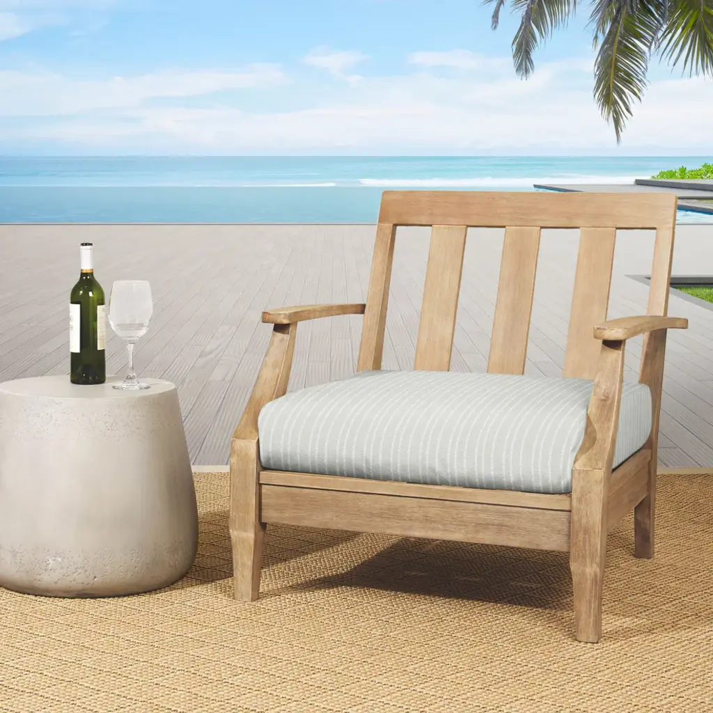 Step out on your porch or patio and start brightening it up with this beautiful new chair cushion! Featuring a stunning stripe fabric in a rich, Gray hue, this cushion will instantly enhance your space and help you comfortably enjoy the outdoors! Crafted out of a performance material right here in North America, this chair cushion is made to withstand the sun, rain and even stains so that all you have to do is sit back and relax! Outdura is the trusted brand for performance upholstery fabric for outdoor and indoor use.-Outdura fabrics are made from 100% solution-dyed acrylic with color pigments infused to the core of fibers, ensuring colorfastness, UV resistance, and durability.- • Ideal for casual indoor and outdoor use• Includes one (1) deep seating cushion• Cushion cover can be removed for easy cleaning• Available in a variety of sizes and colors to ensure that you find the perfect match for your furniture• Cushion only. Furniture not included.• • Made in North America•