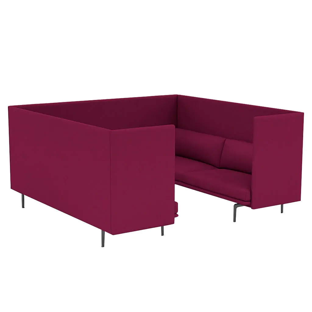 Incorporating a pair of Outline 3-seaters, this Highback Cabin version offers a roomy enclosure meant to create a sense of focus and immersion for group activity within larger environs. With its soft, deep seated comfort and a clean-lined upholstered exterior, Muuto creates a complete environment that suits open-plan areas, hospitality settings, offices or public spaces alike.