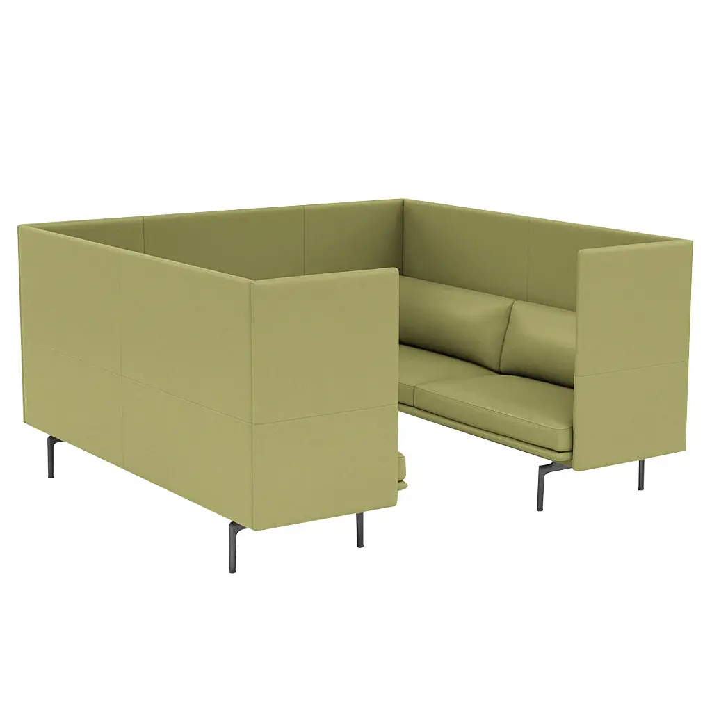 Incorporating a pair of Outline 3-seaters, this Highback Cabin version offers a roomy enclosure meant to create a sense of focus and immersion for group activity within larger environs. With its soft, deep seated comfort and a clean-lined upholstered exterior, Muuto creates a complete environment that suits open-plan areas, hospitality settings, offices or public spaces alike.
