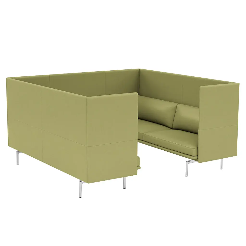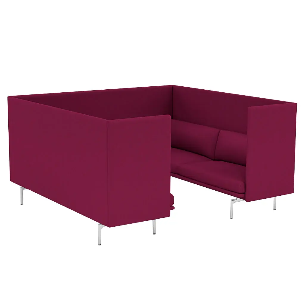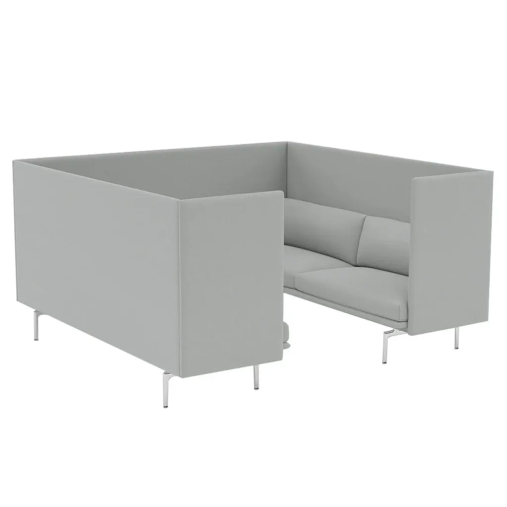 Incorporating a pair of Outline 3-seaters, this Highback Cabin version offers a roomy enclosure meant to create a sense of focus and immersion for group activity within larger environs. With its soft, deep seated comfort and a clean-lined upholstered exterior, Muuto creates a complete environment that suits open-plan areas, hospitality settings, offices or public spaces alike.