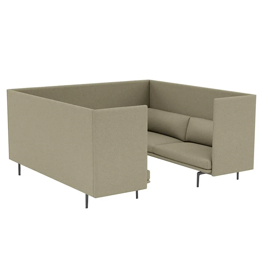 Incorporating a pair of Outline 3-seaters, this Highback Cabin version offers a roomy enclosure meant to create a sense of focus and immersion for group activity within larger environs. With its soft, deep seated comfort and a clean-lined upholstered exterior, Muuto creates a complete environment that suits open-plan areas, hospitality settings, offices or public spaces alike.