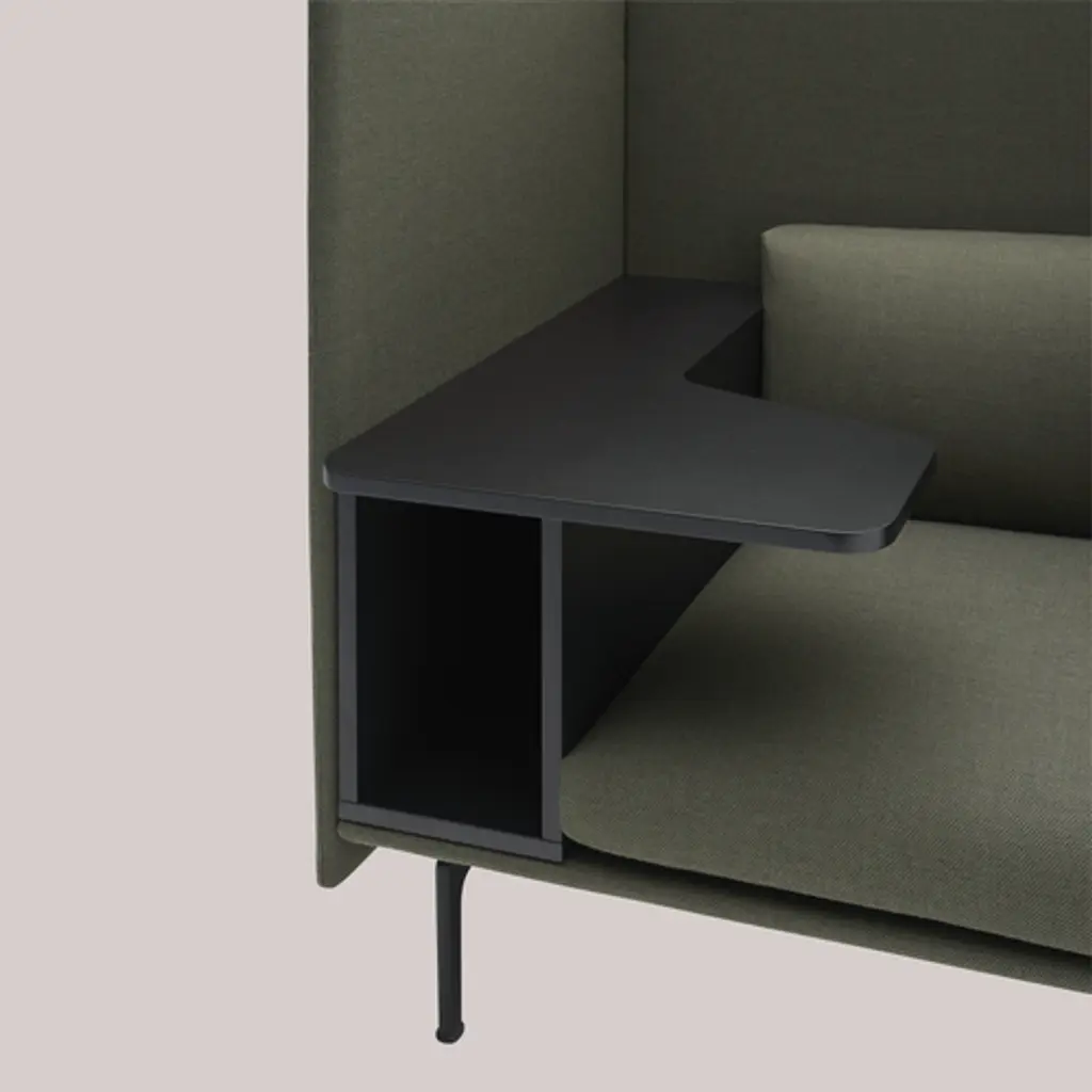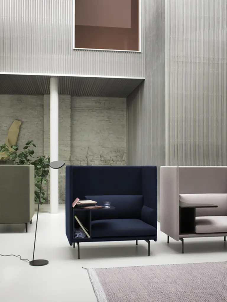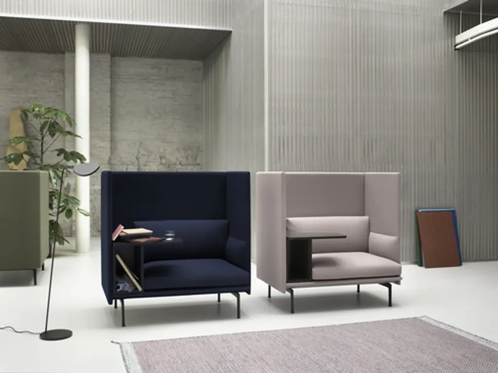 The Outline Highback Work combines the soft, deep seat and clean refined lines of the Outline series with a highback element and functional elements, allowing for the design to create an acoustic and spatial shelter to work and focus on the given task at hand. The design has an integrated storage room alongside a cable outlet that can be added for easy power access. The Outline Highback Work has a timeless yet modern expression that makes it an ideal fit in any open-plan space, hospitality setting, workplace or public area.