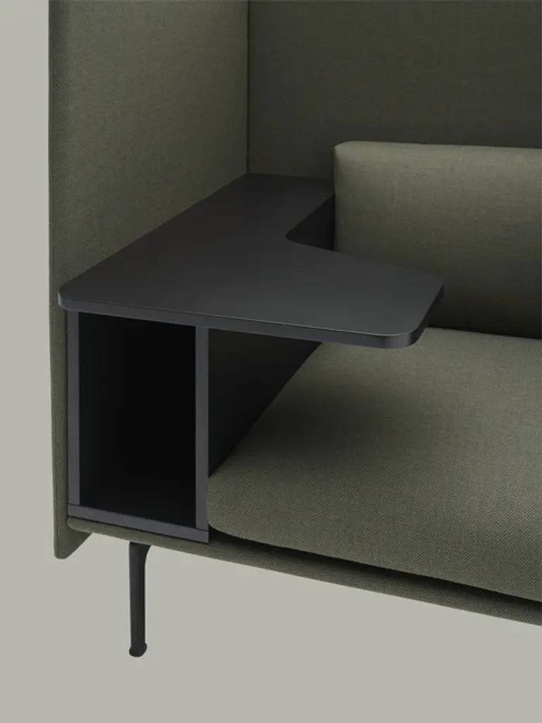 The Outline Highback Work combines the soft, deep seat and clean refined lines of the Outline series with a highback element and functional elements, allowing for the design to create an acoustic and spatial shelter to work and focus on the given task at hand. The design has an integrated storage room alongside a cable outlet that can be added for easy power access. The Outline Highback Work has a timeless yet modern expression that makes it an ideal fit in any open-plan space, hospitality setting, workplace or public area.
