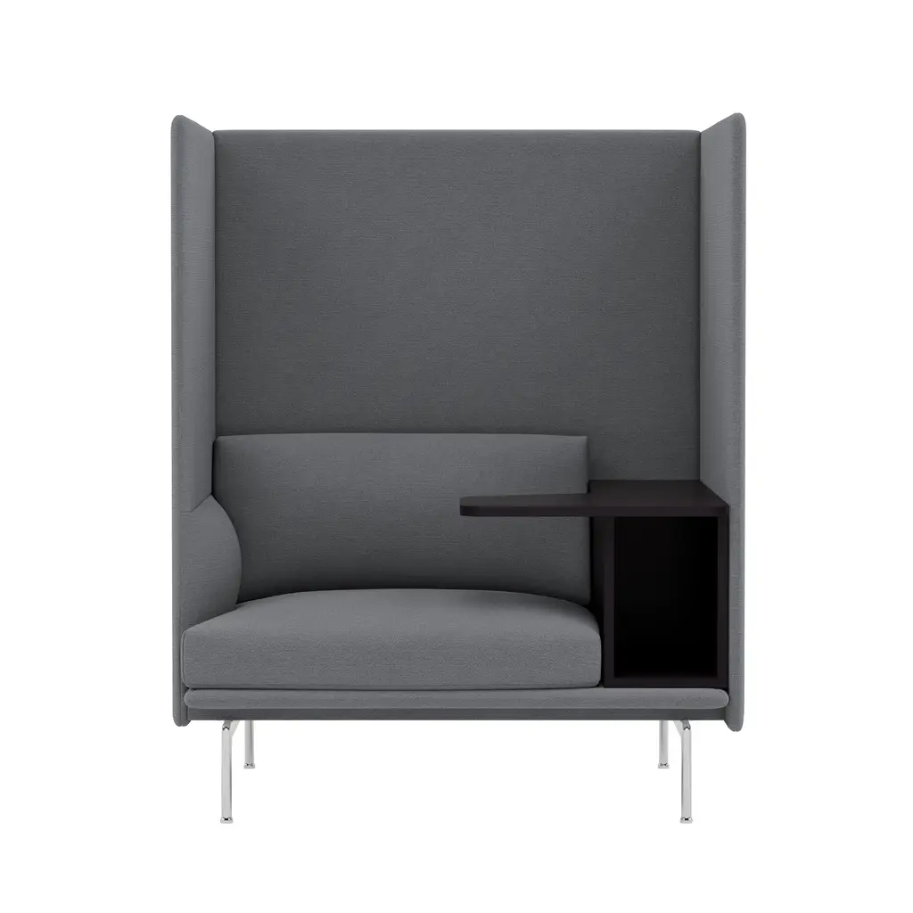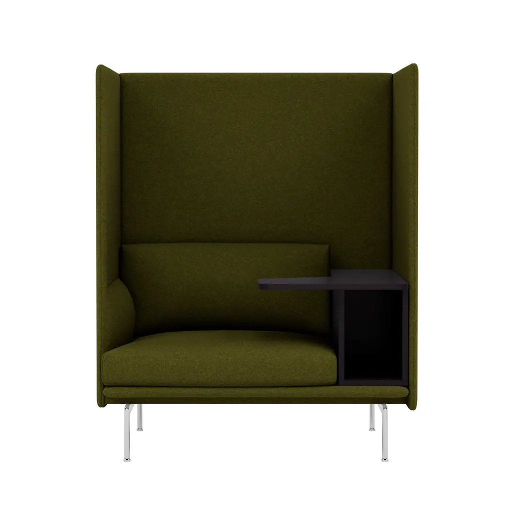 Providing acoustic and spatial shelter, Muuto’s refined Outline series adds Highback Work, combining expansive seated comfort with a desk surface-storage cubby on a trim base. Options include left or right orientation and a cable outlet for easy power access, making the chair a complete task-oriented environment for open-plan offices or hospitality settings.