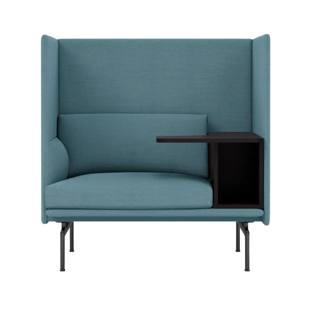 Highback Work extends the clean lines of the Outline seating series, creating an acoustic and spatial enclosure with an integrated desk-storage cubby and handy cable outlet. With a choice of premium stock upholstery selections, the seating is available with left or right orientation and features durable wood and steel construction, cold-foam fill and black powder-coated or polished aluminum legs. The work table in black MDF with a matte lacquer finish makes it an ideal fit in any open-plan space, hospitality setting or workplace.