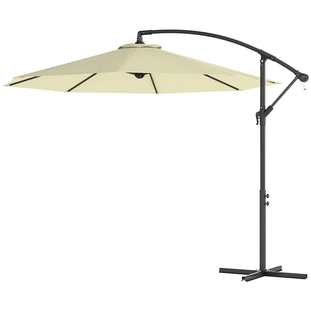 Outsunny 10' Cantilever Hanging Tilt Offset Patio Umbrella With Uv & Water Fighting Material And Cross Base (Weight Not Included), Beige