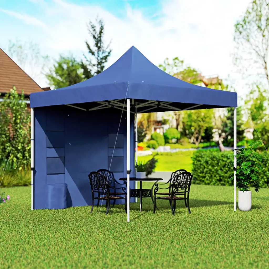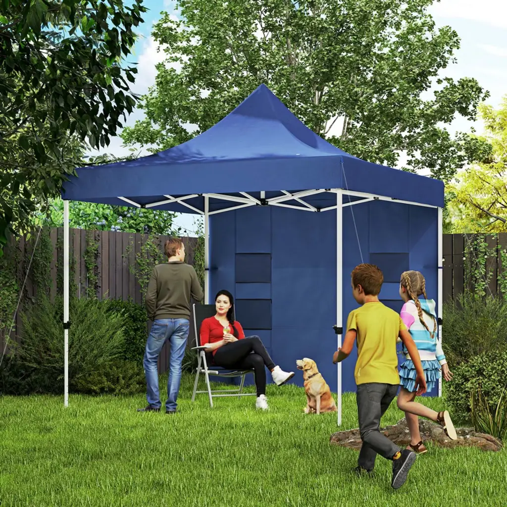 Outsunny 10' X 10' Heavy Duty Pop Up Canopy Tent With Sidewall, Upf50+ Instant Sun Shelter, Dark Blue