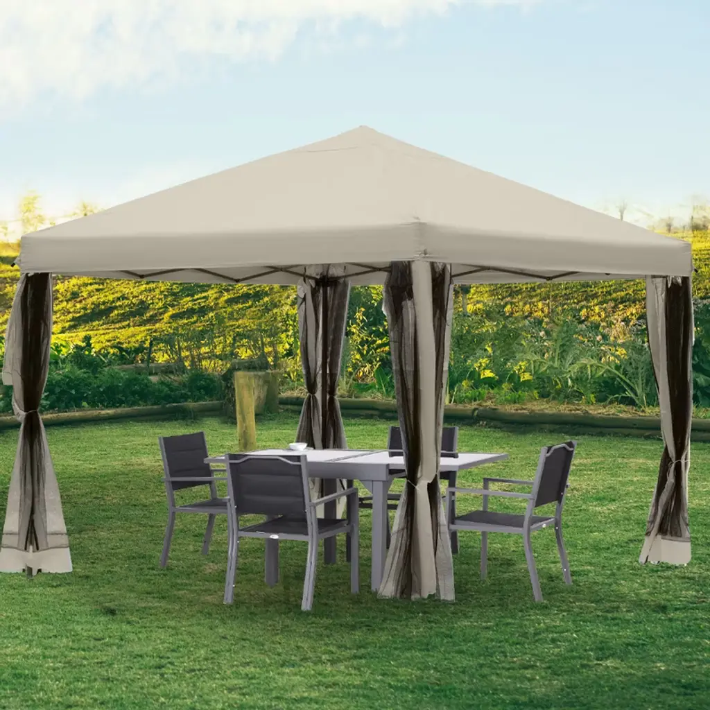 Outsunny 10' X 10' Heavy Duty Pop Up Canopy With Removable Mesh Sidewall Netting, Easy Setup Design, Outdoor Party Event With Storage Bag, Beige