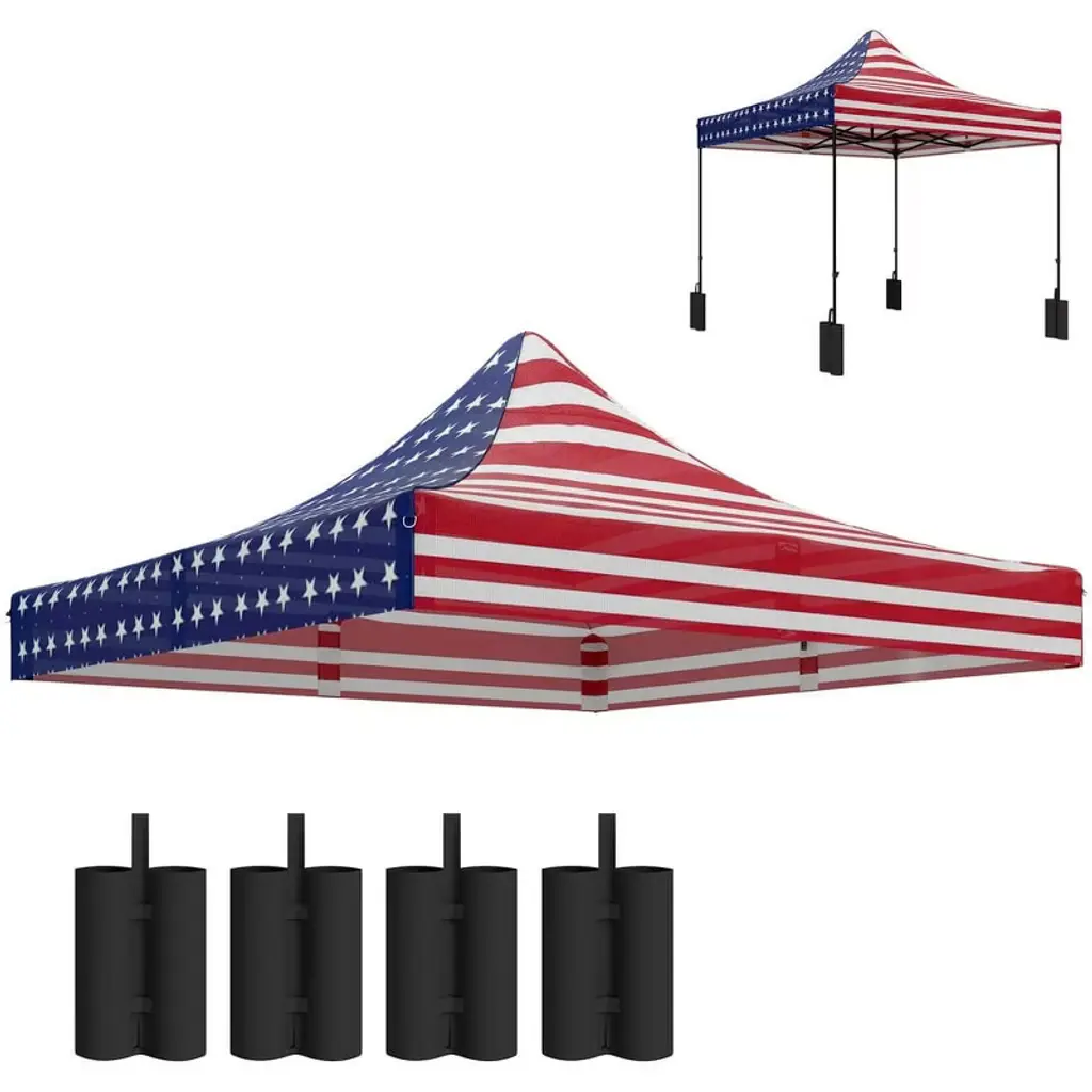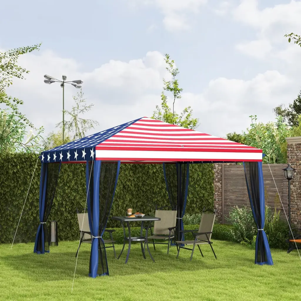 Outsunny 10' X 10' Heavy Duty Pop Up Canopy With Removable Mesh Sidewall Netting, Outdoor Party Event With Storage Bag, American Flag