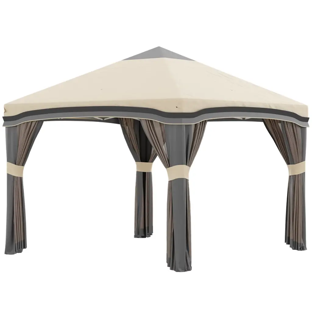 Outsunny 10' X 13' Outdoor Patio Gazebo Canopy Shelter With 6 Removable Sidewalls, & Steel Frame For Garden, Lawn, Backyard And Deck, Gray